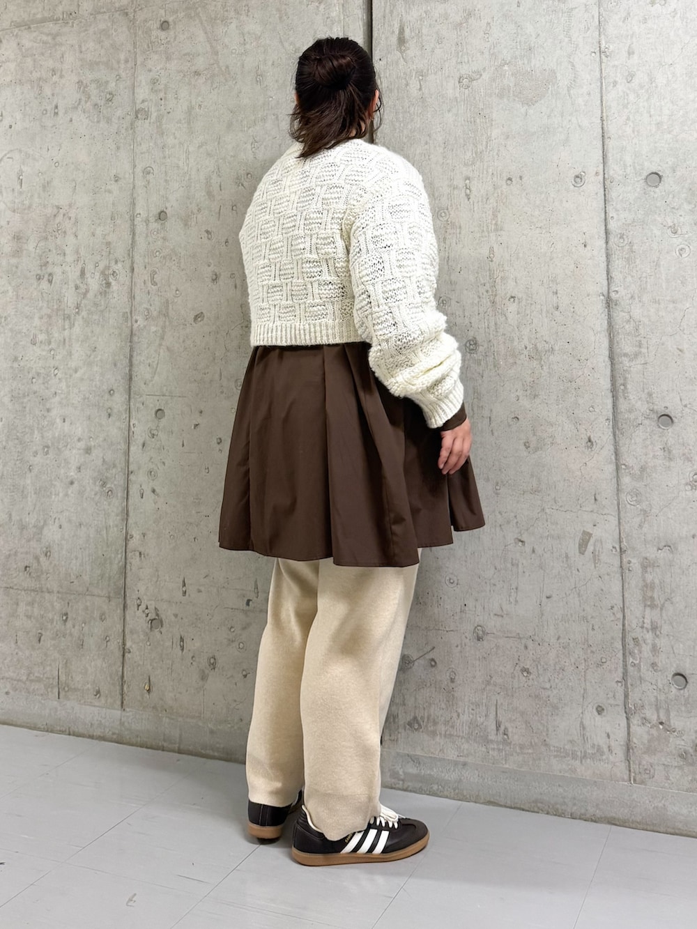 ニットはオーバーサイズでゆったり着られて、シャツなどとレイヤードスタイルも可愛くておすすめです!