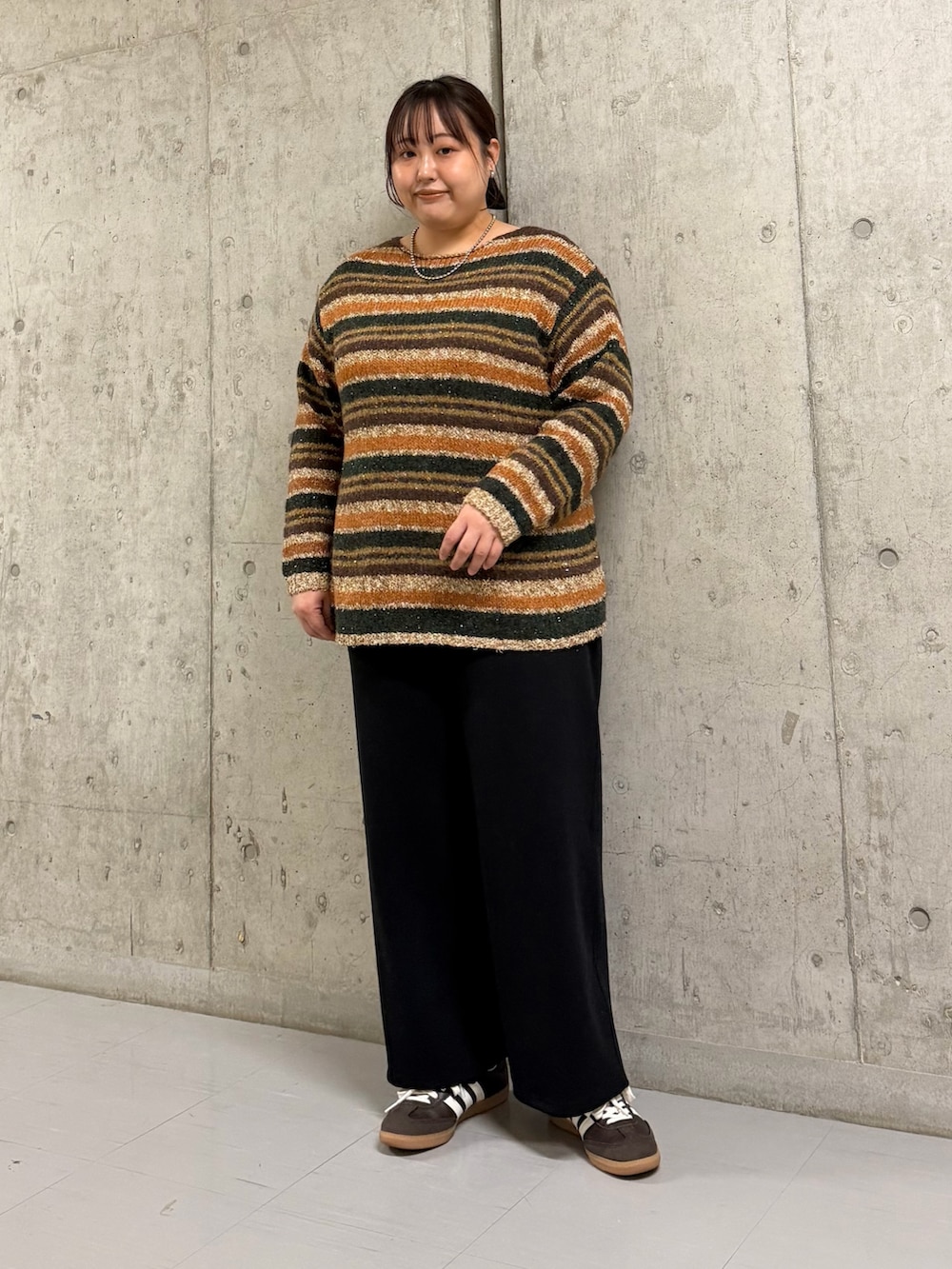 ニットはオーバーサイズで着やすく、キラキラ感やボーダーのデザインが可愛くて着映えするのでおすすめです!