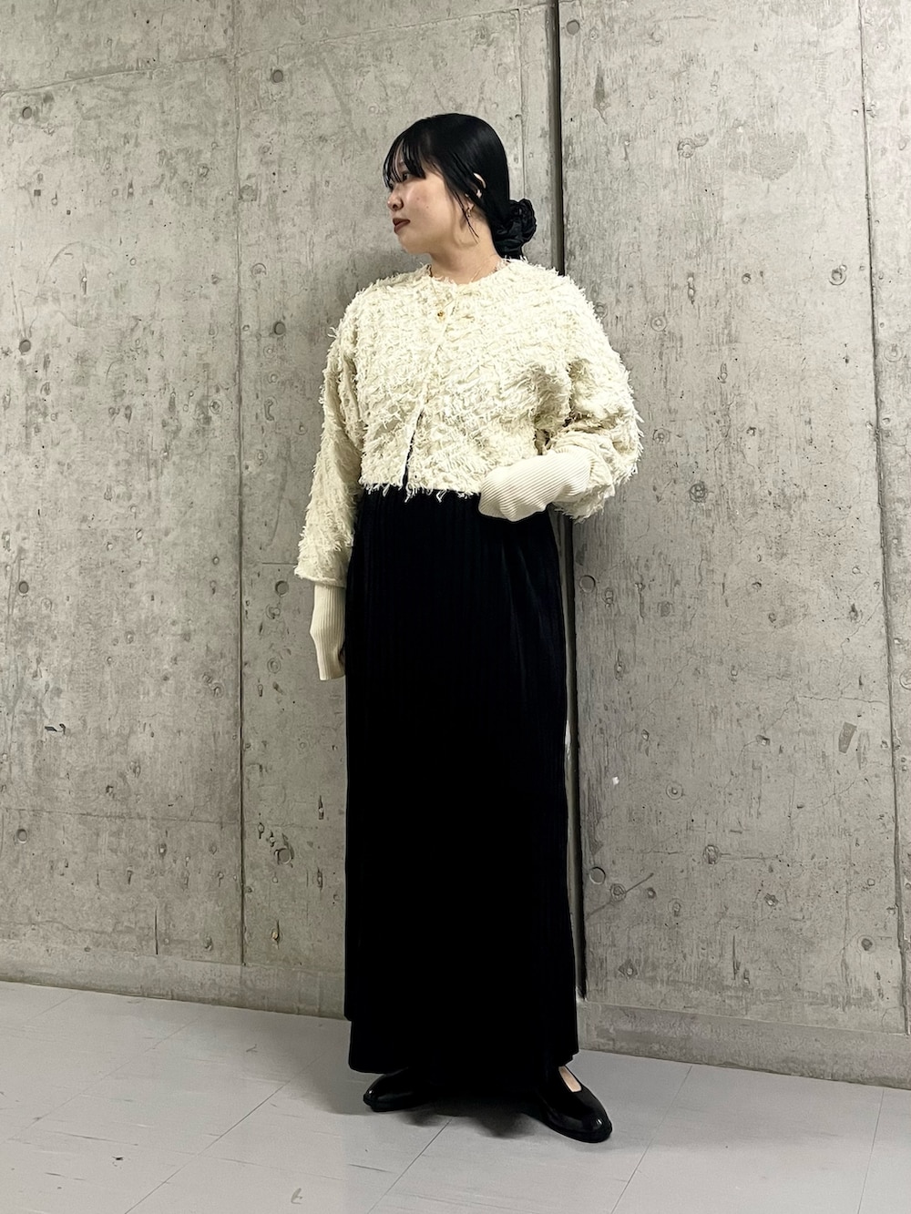人気のカーディガンと楽ちんなプリーツワンピースを合わせてみました!