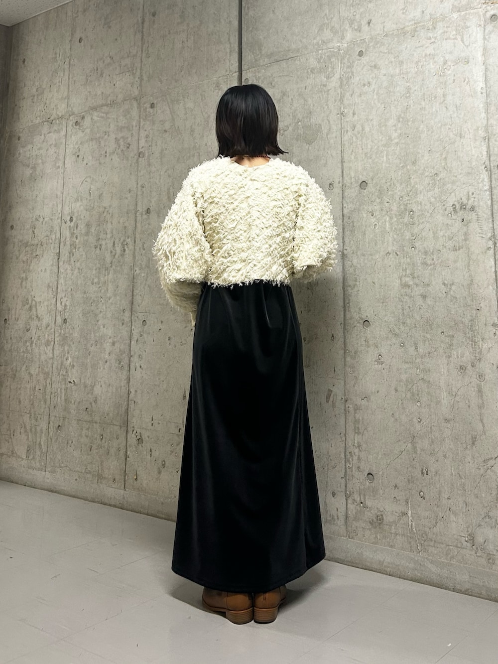 前後2wayで着られて便利!ワンピースの上に重ねても◎、羽織としても◎