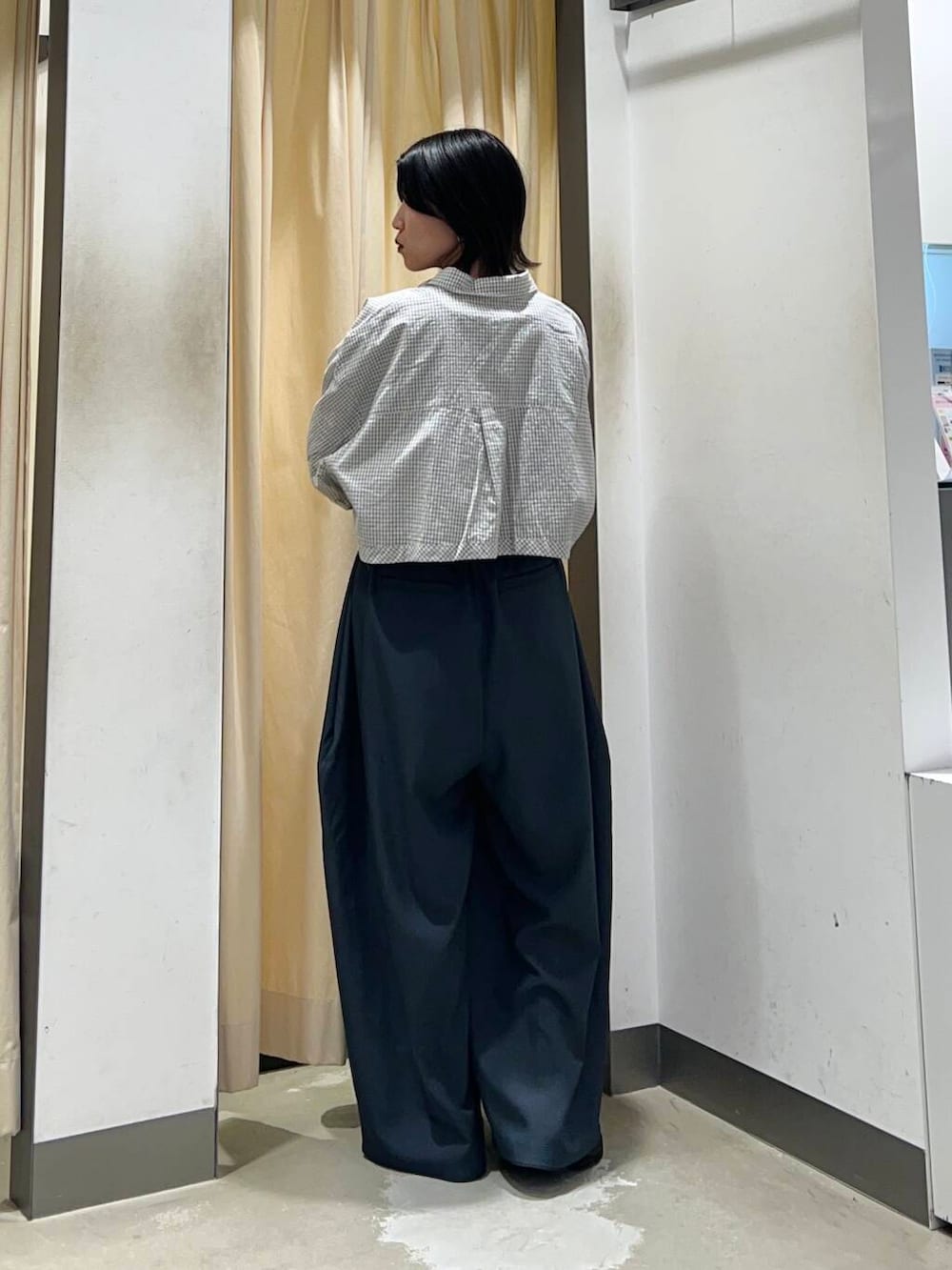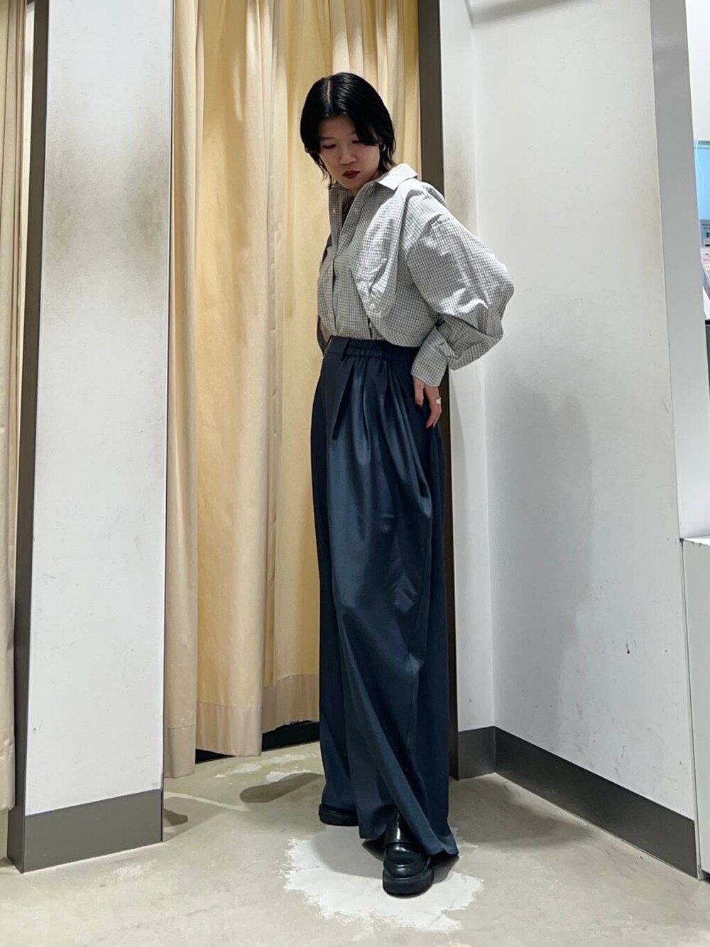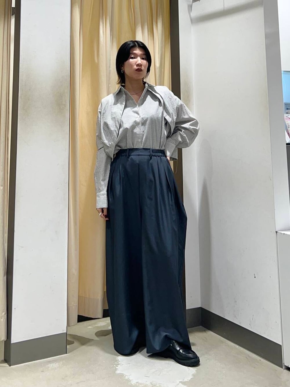ワイドパンツなのでトップスは短めのものか、トップスインの