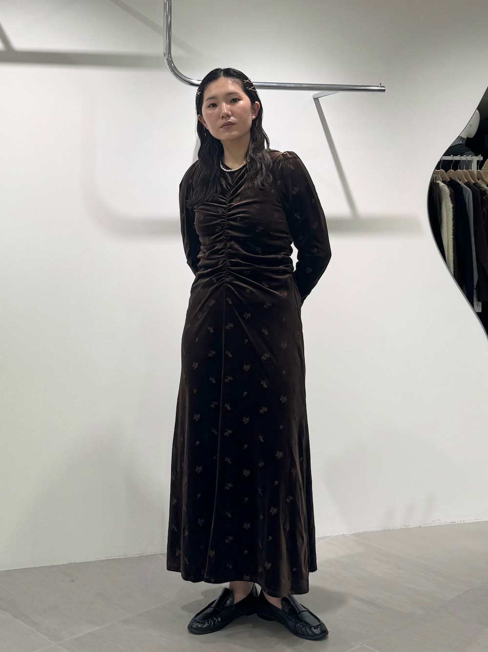 フリルをふんだんに使ったシャツとベロアスカートは、デザインや生地感が特徴的なので、オールブラックでも重たくなりすぎず、しっかりおしゃれに着れます!