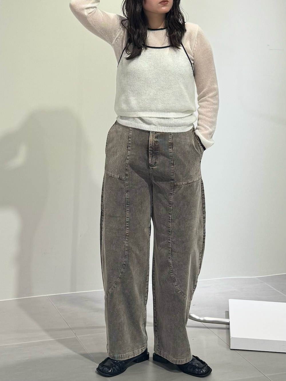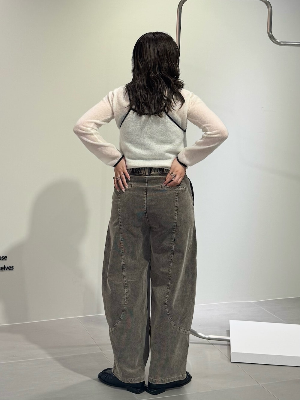 程よくボリューム感のあるコクーンシルエットで、ウエスト周りはすっきりしつつ、後ろゴム仕様で履き心地も抜群◎
