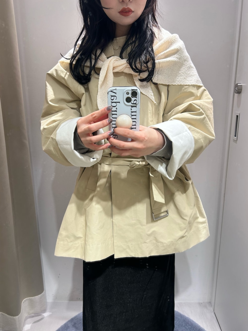ベルトをローウエストで結んでフワッと着るのがおすすめです🙂↕️✨