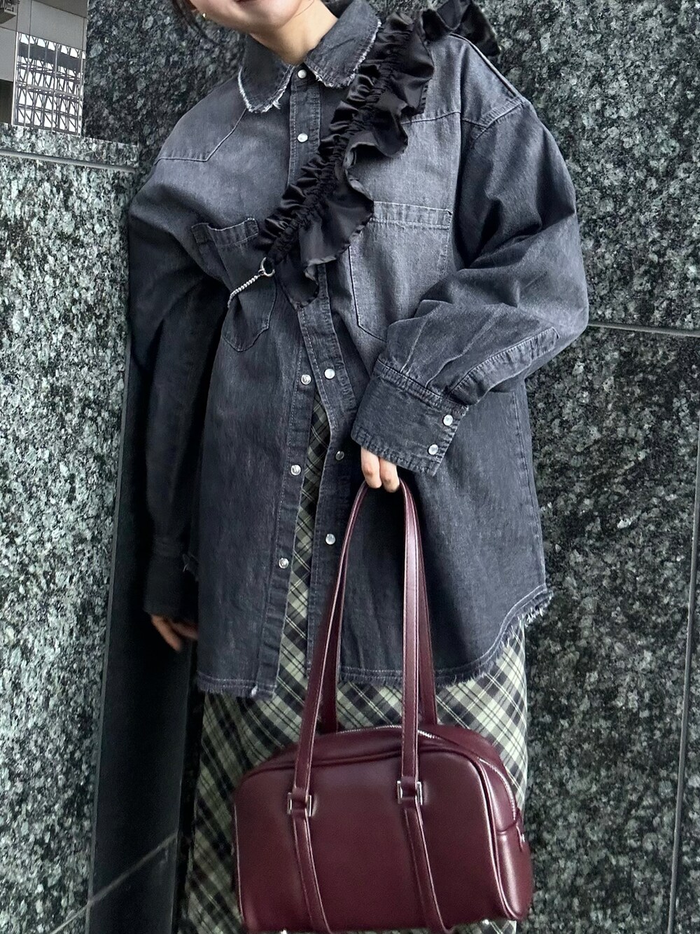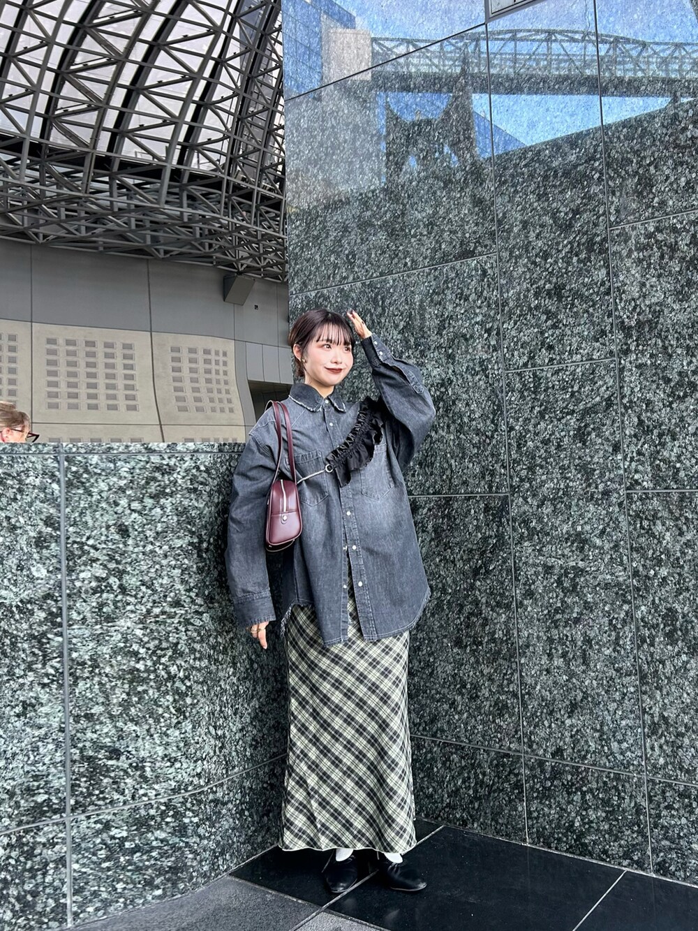 イチオシのデニムシャツとチェックスカートの組み合わせが大人気です♪