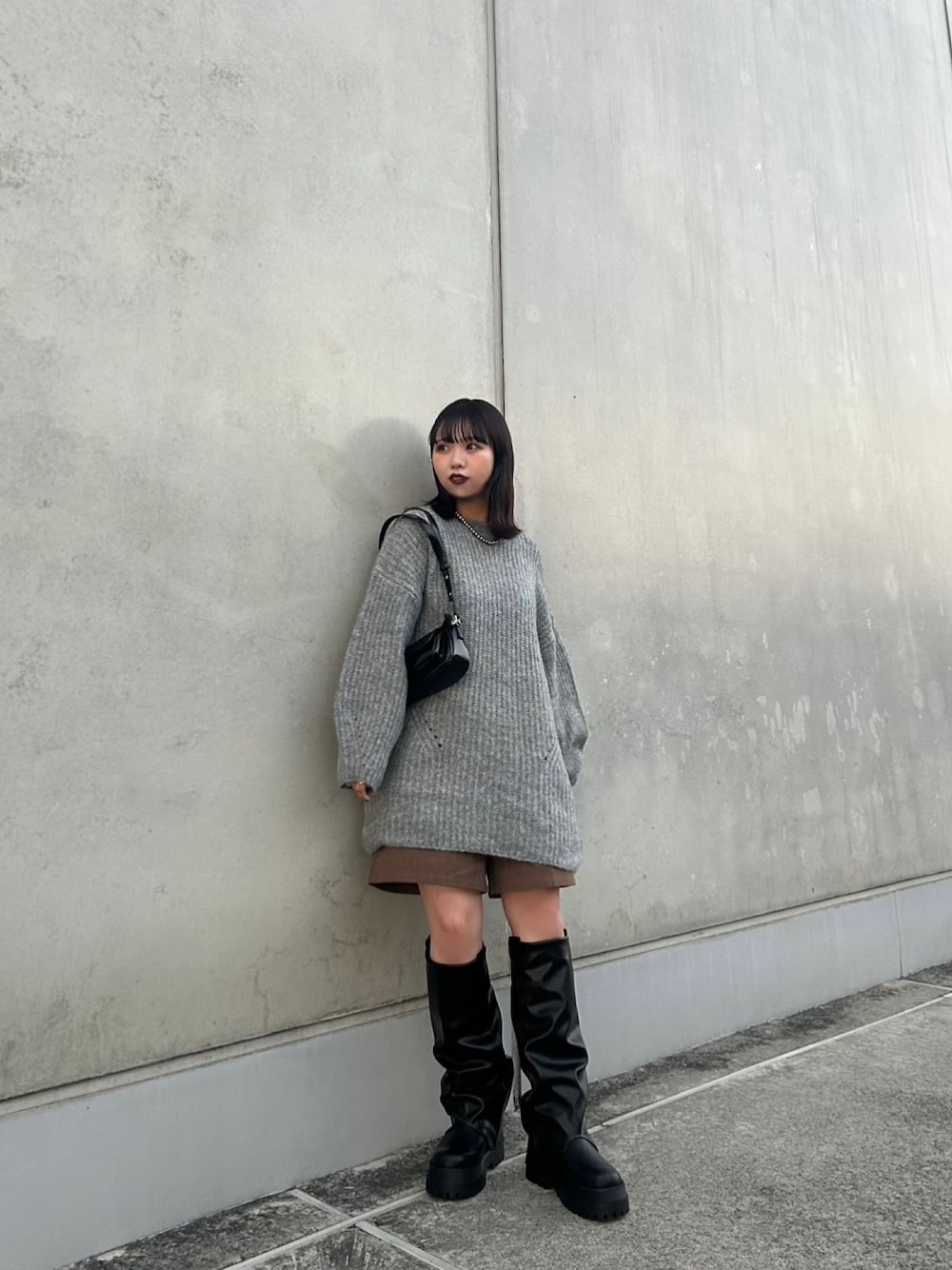 ダボっとしたロングブーツにダボっとしたニットのシルエットたまりません💞