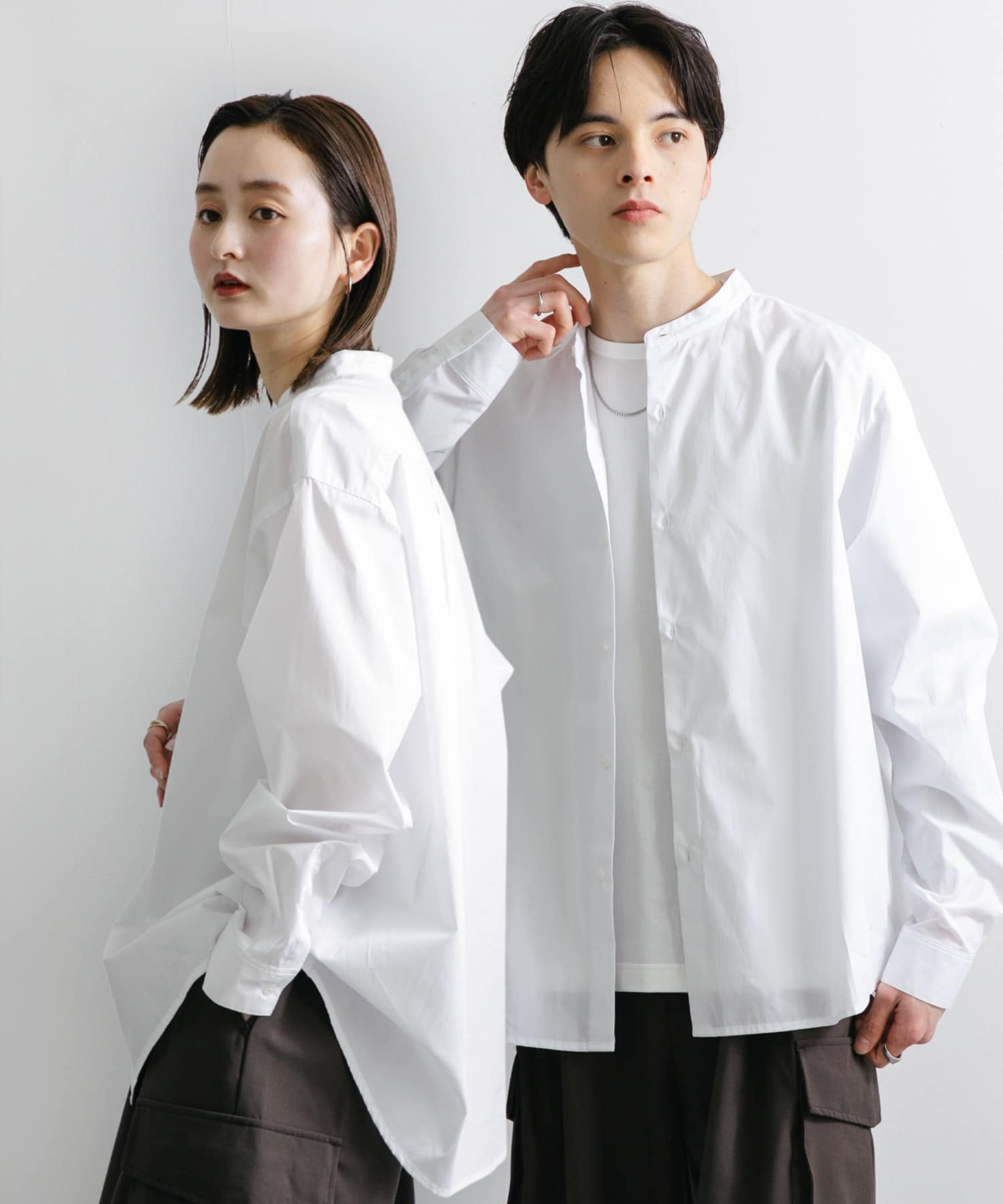 SENSE OF PLACE『WEB限定』『ユニセックス』『イージーケア』コンフォートバンドカラーシャツ