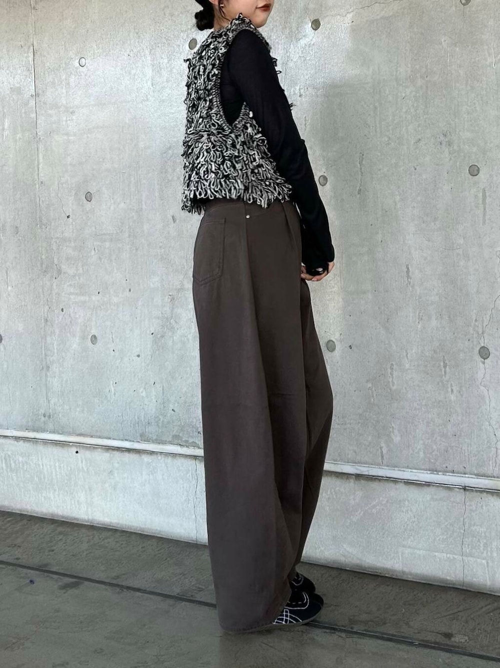 ワンタックコクーンパンツのシルエットも可愛くてお気に入りです◎