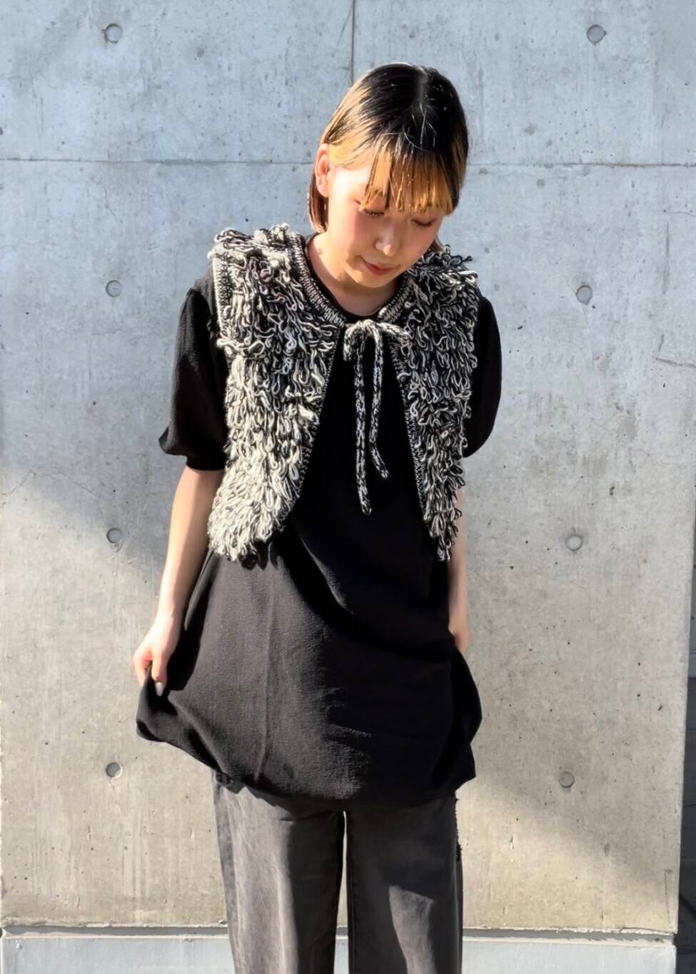 ループベストはタンクトップ合わせで、先取りの秋コーデで着れます😶🧡