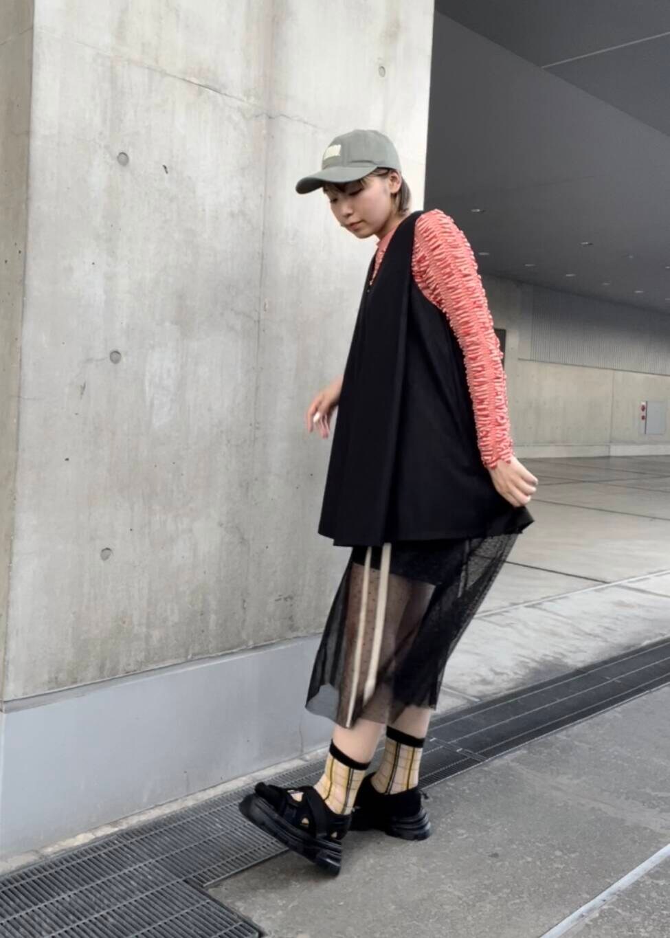 レイヤードしやすいピタッとしたトップスは一枚で着ても主役級です😶🧡