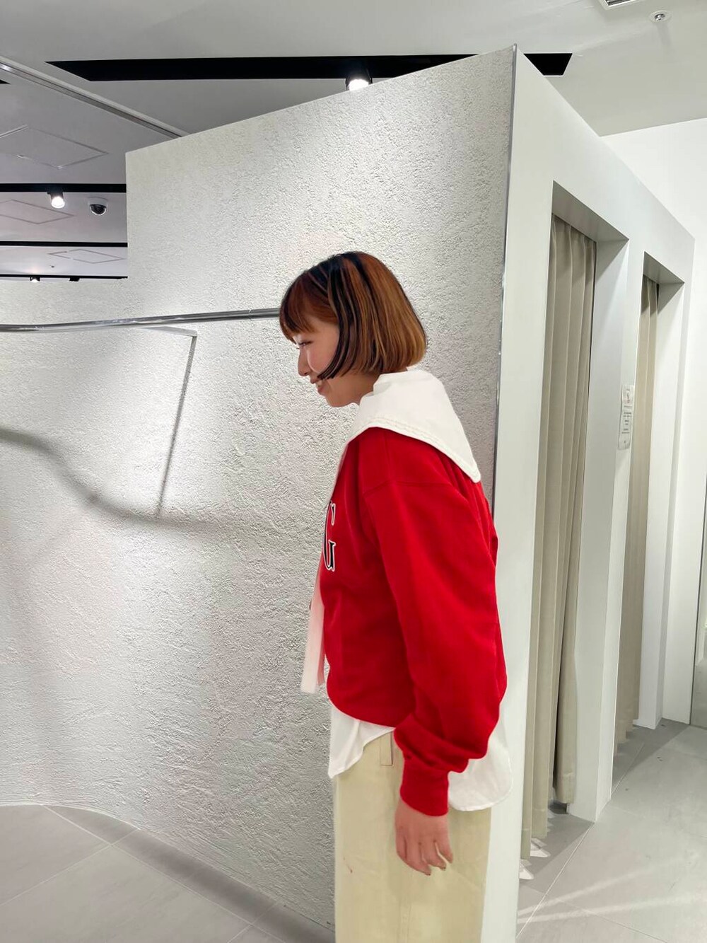 赤のスウェットは一気に個性が出るので、シンプルながらも誰とも被らないコーデに😊🧡