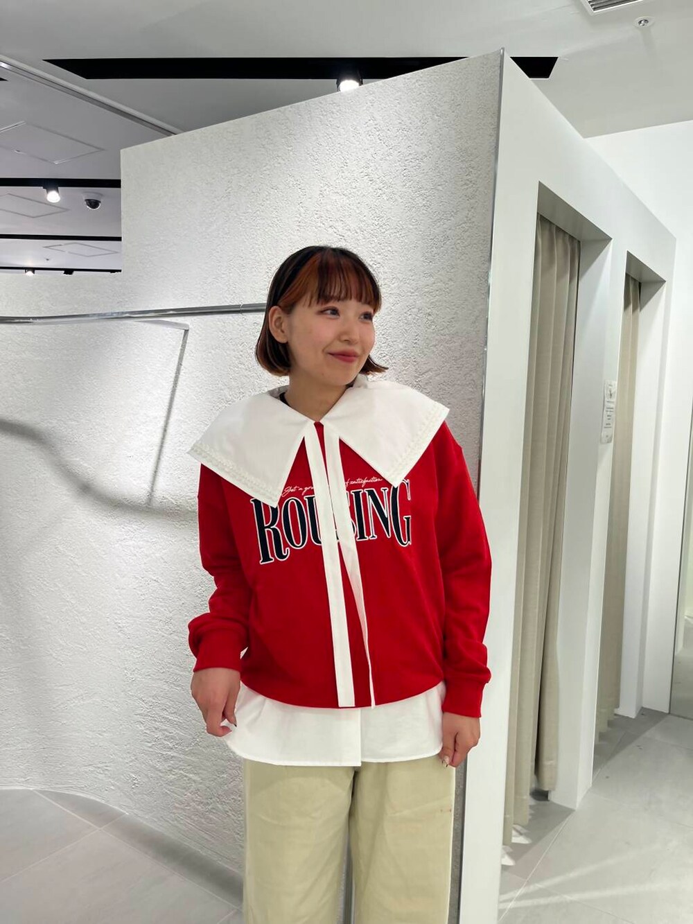 ロゴスウェットにBIG襟のブラウスで一気にレトロ感がでます!