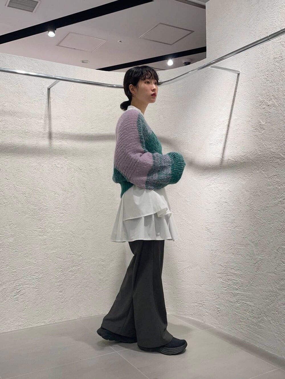 カーディガンのカラーが可愛いので他アイテムはシンプルに合わせています!♩