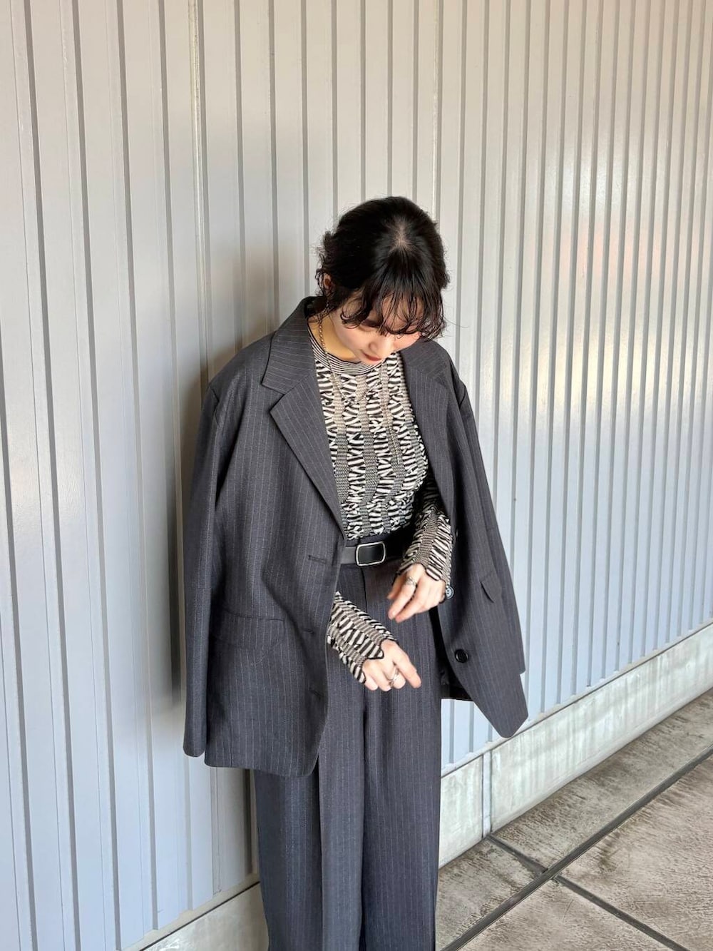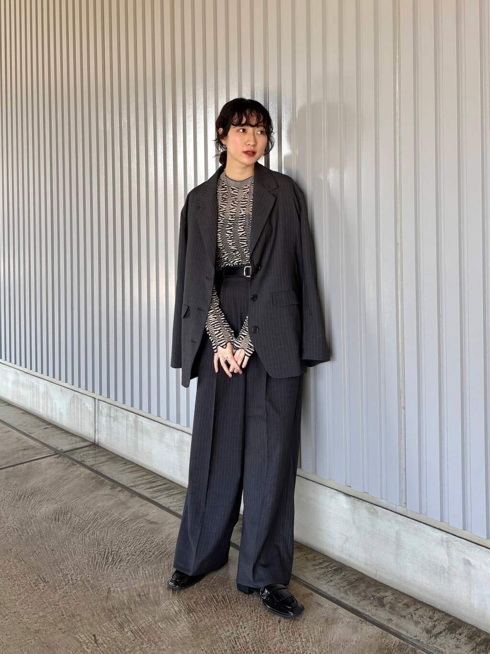 ジャケットは肩パットが入っており、オーバーサイズなサイズ感がかっこいいです!