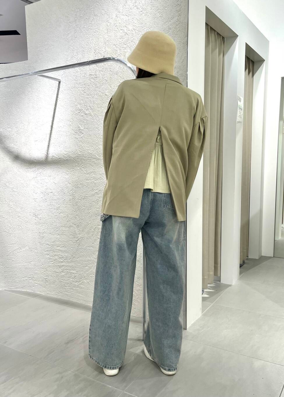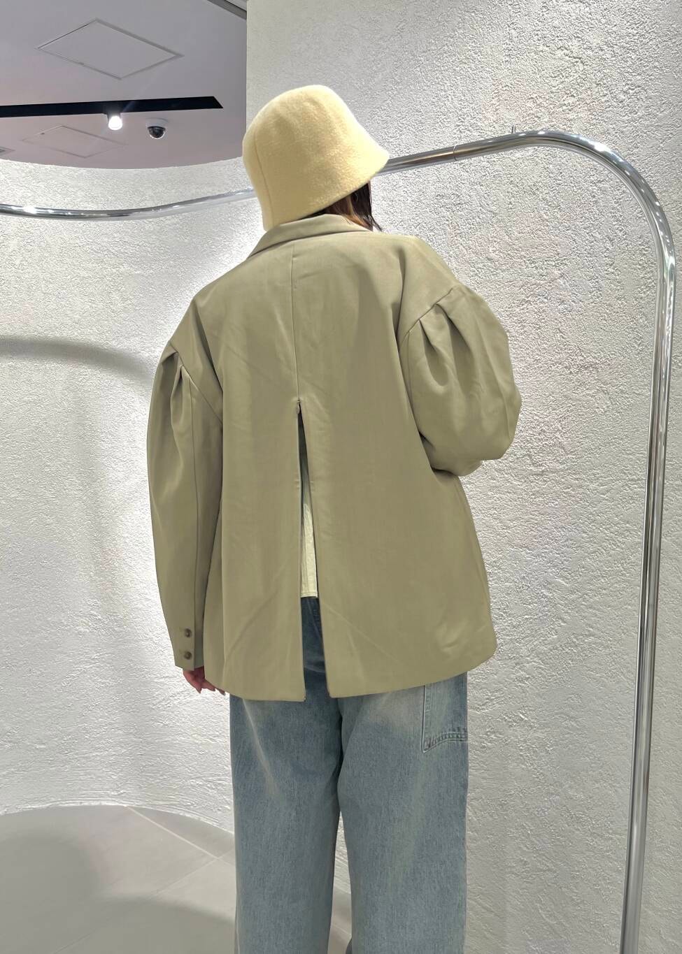 ジャケットの後ろはチャックが付いているので、トップスのカラー遊びが楽しめるアイテムになっています!