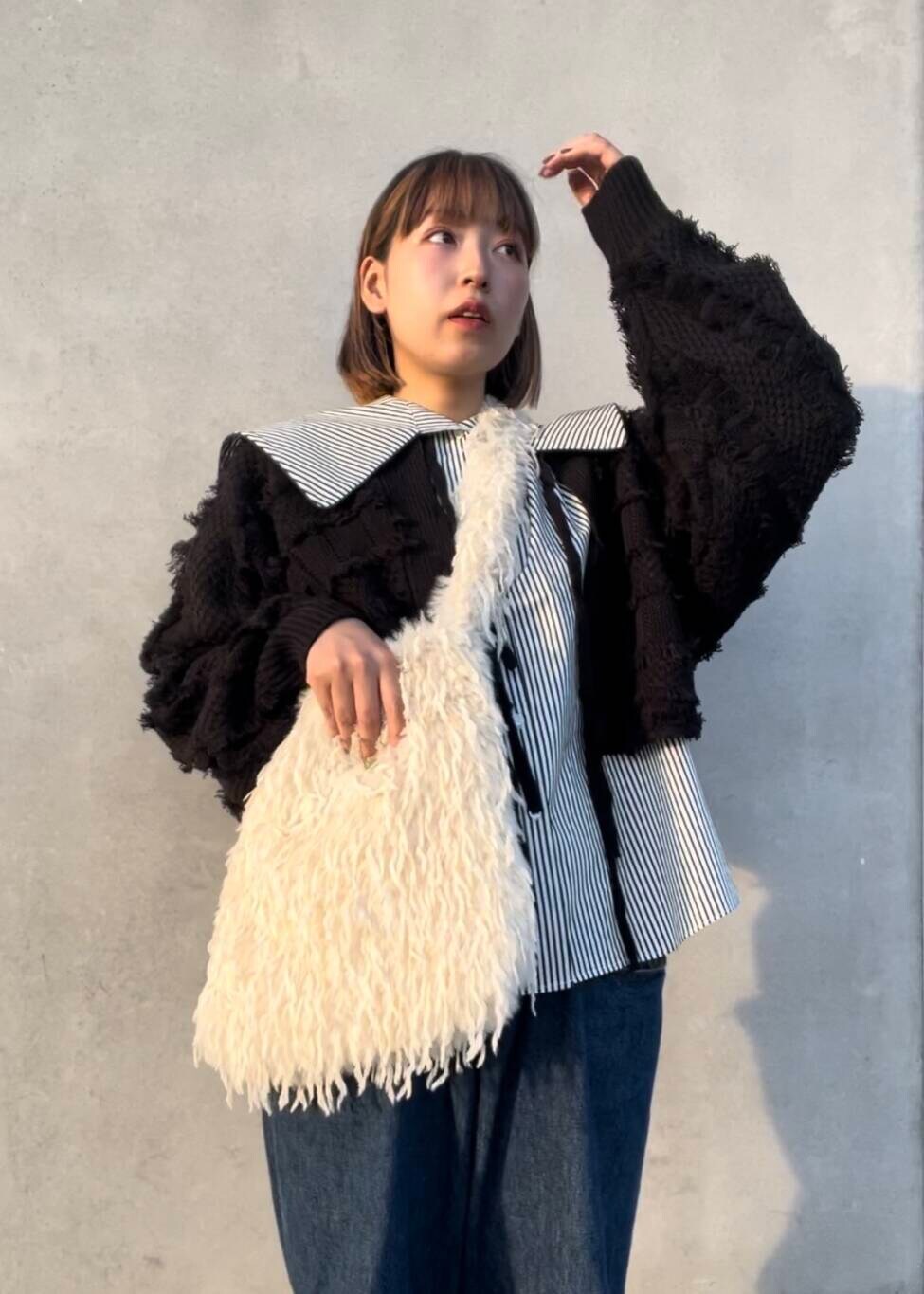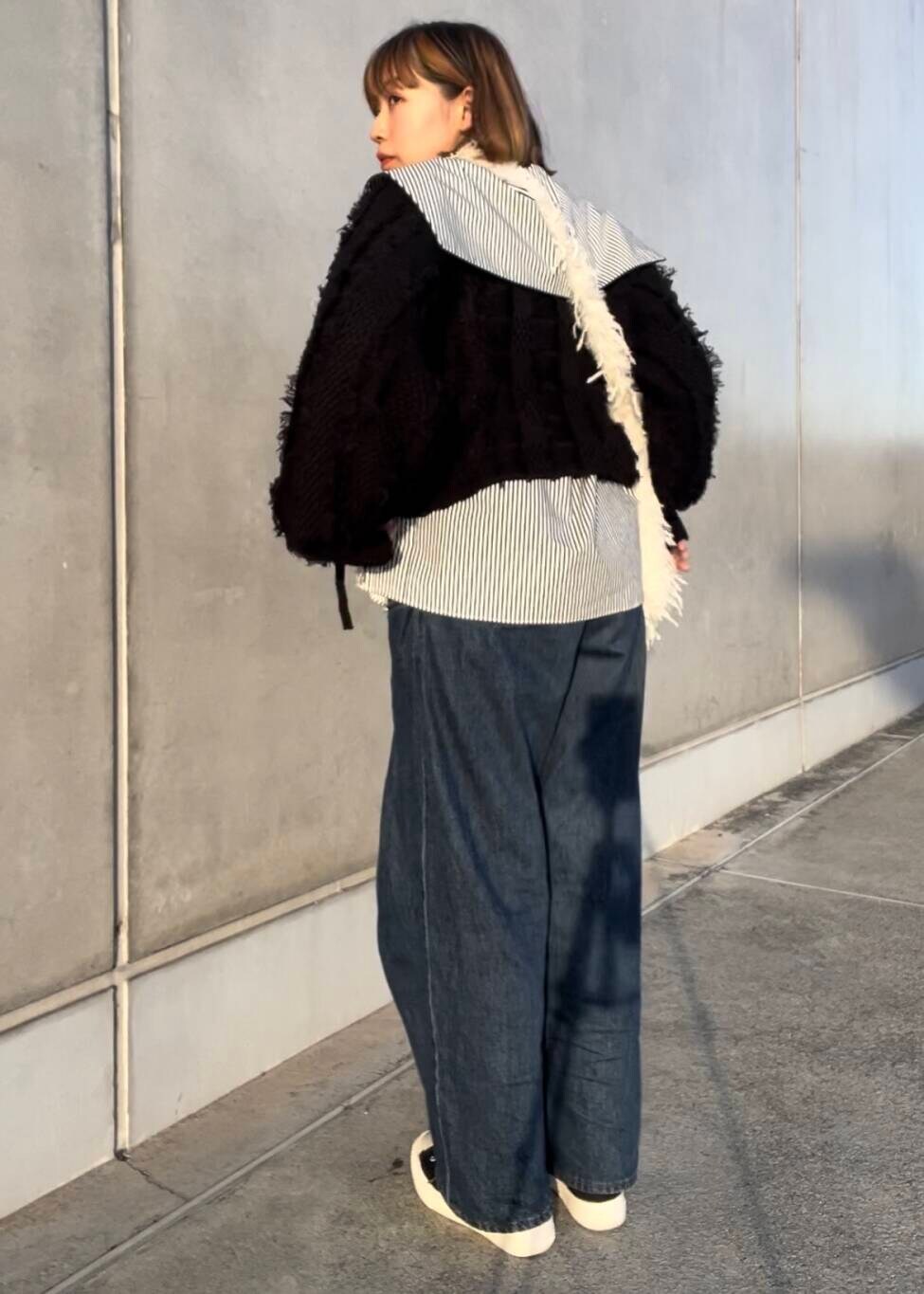 袖の部分にデザイン性があるので、黒のスカートで合わせればちょっとお高めランチコーデにもっ!!!