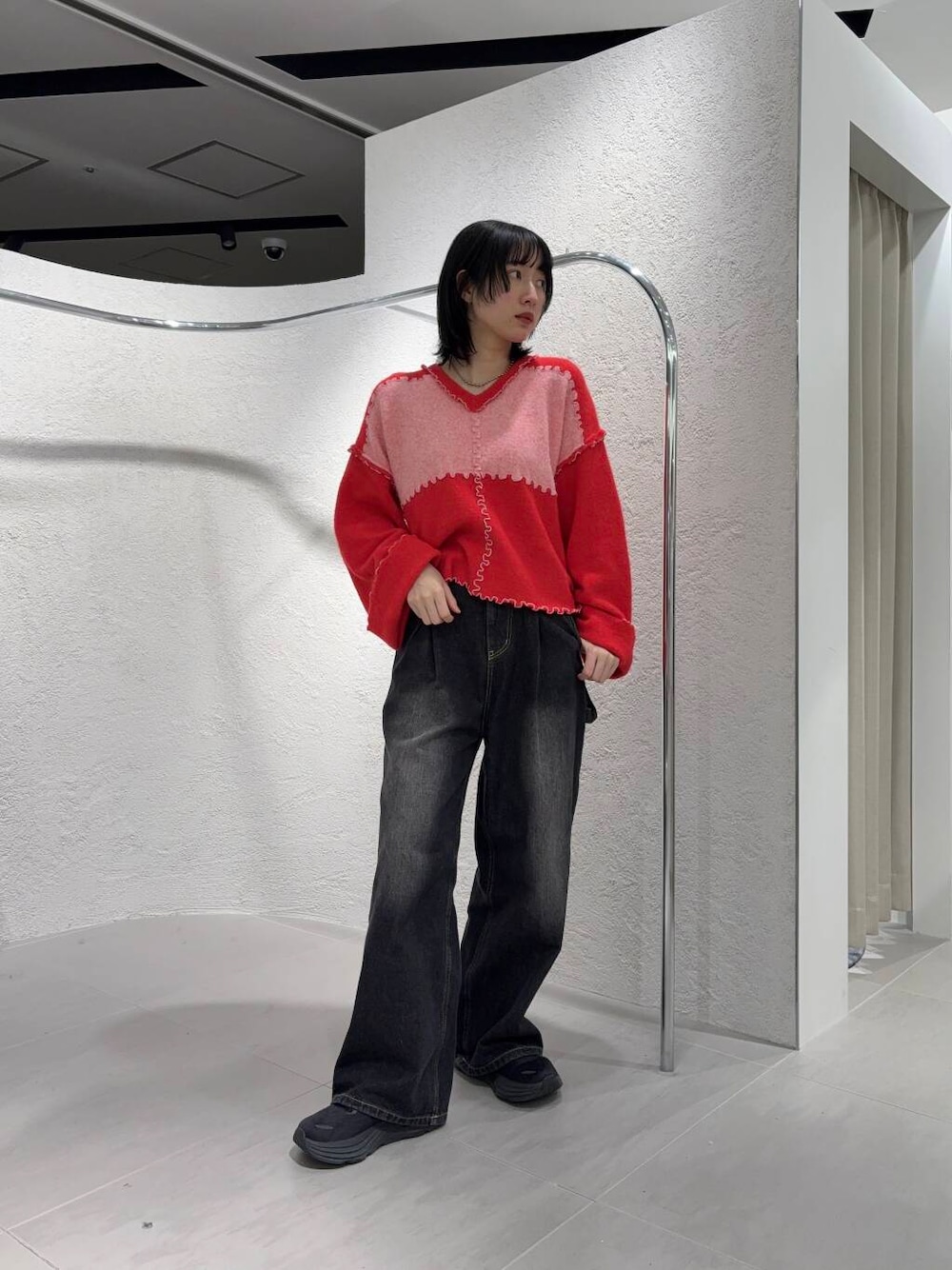 新作の赤ニットで、