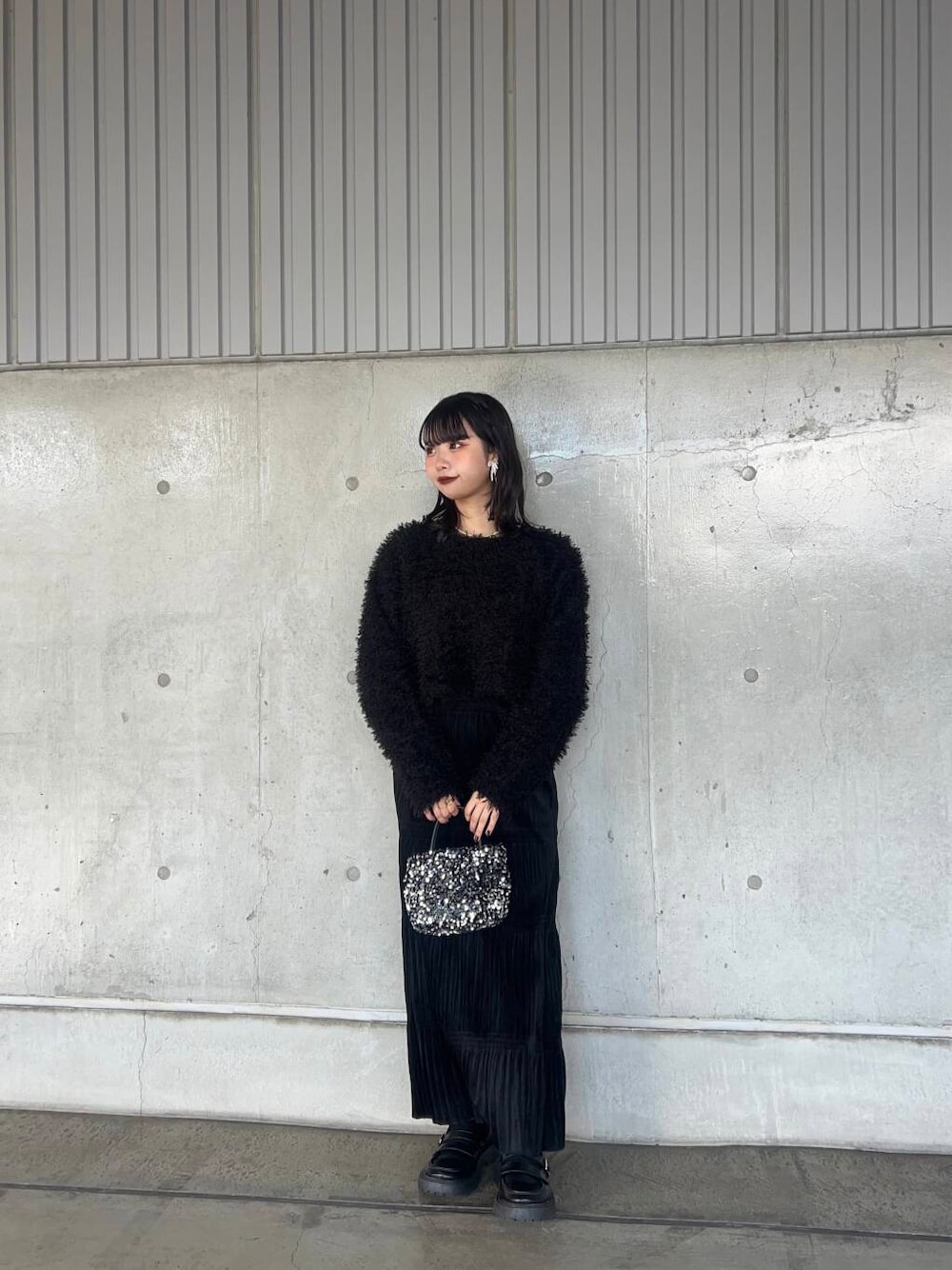マジョリカキャミワンピースを使ったオールブラックコーデを組んでみました🖤