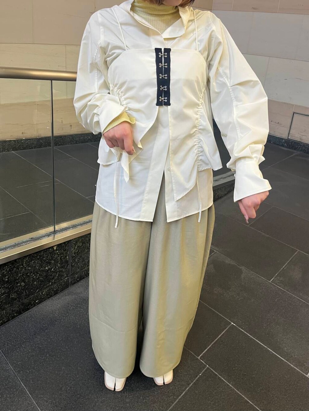 スラックスもデザイン性もありつつ、綺麗なシルエット・カラーなのでオフィスカジュアルでもお使いいただけます👖💞