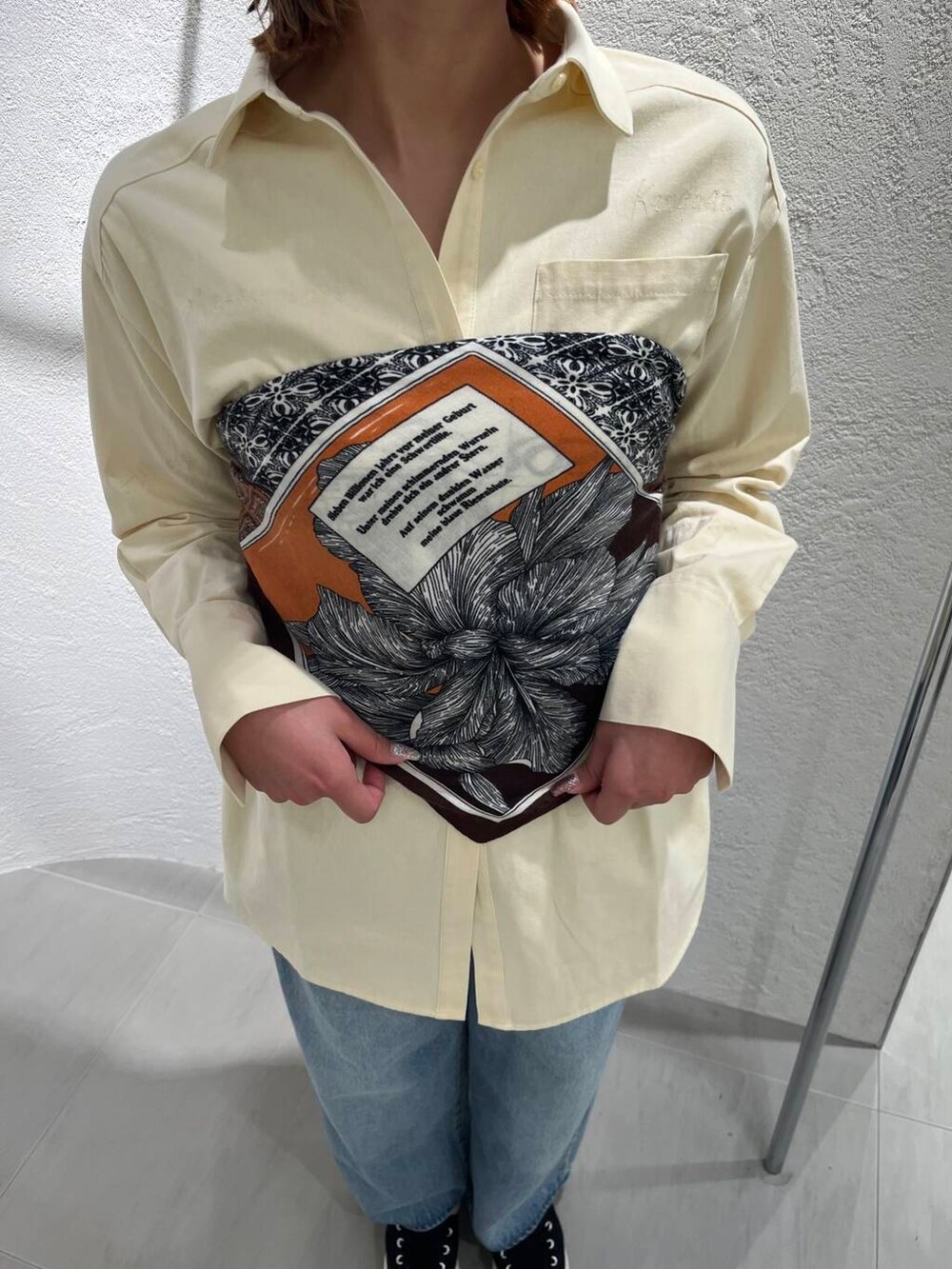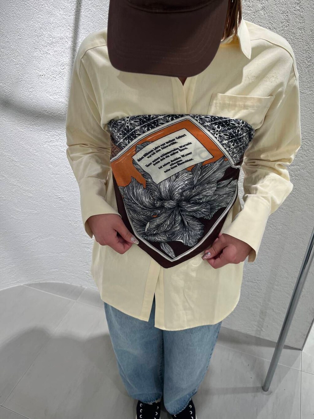 ビスチェ風にアレンジしたスカーフも色々なアレンジが出来る大きさです✨