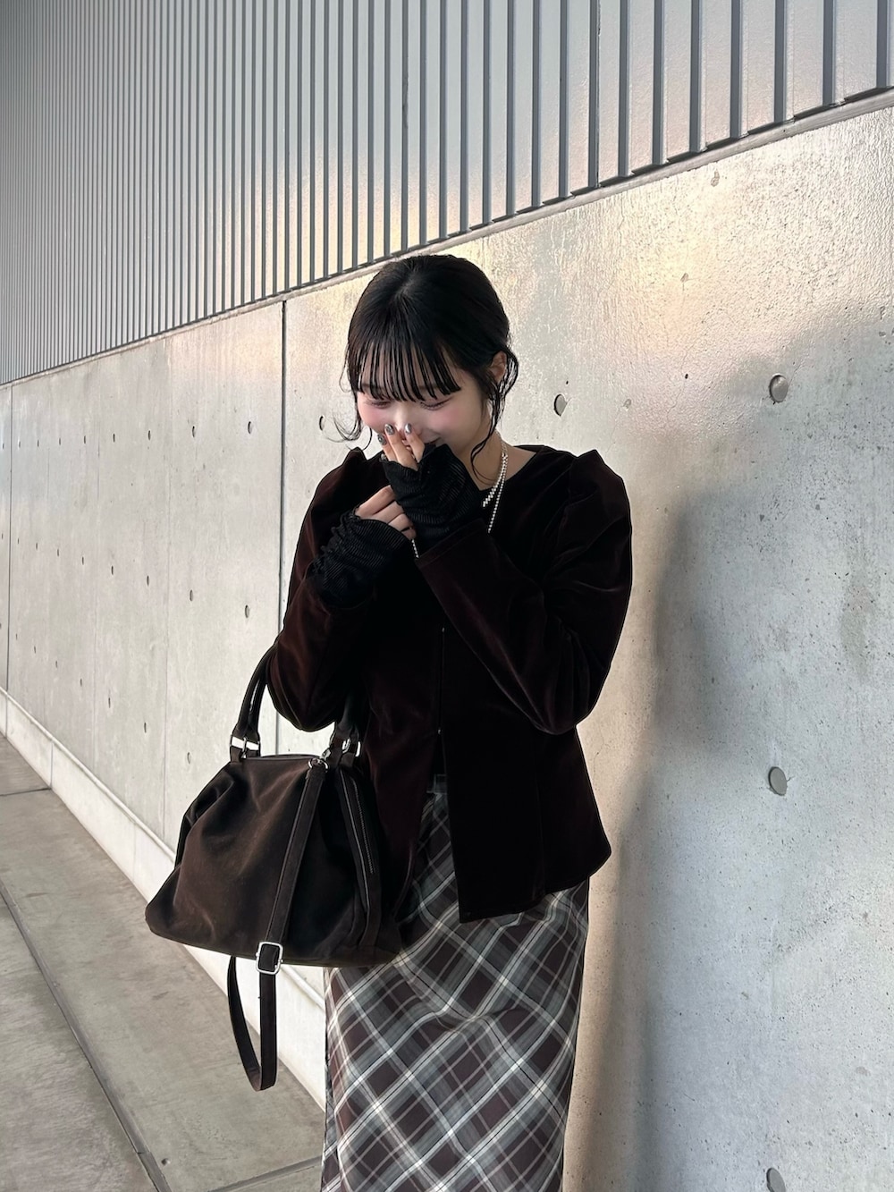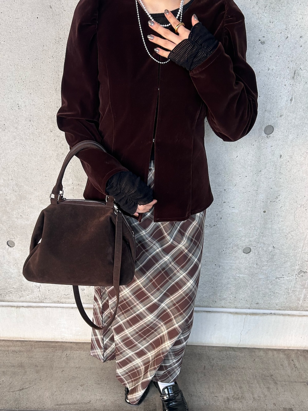 チェックのスカートと合わせて女の子らしい甘めなコーディネートにしてみました🎵