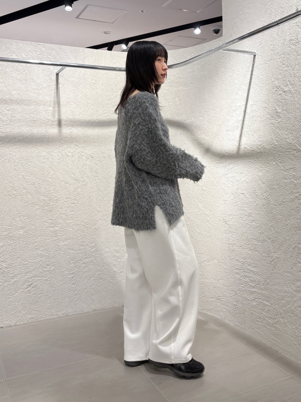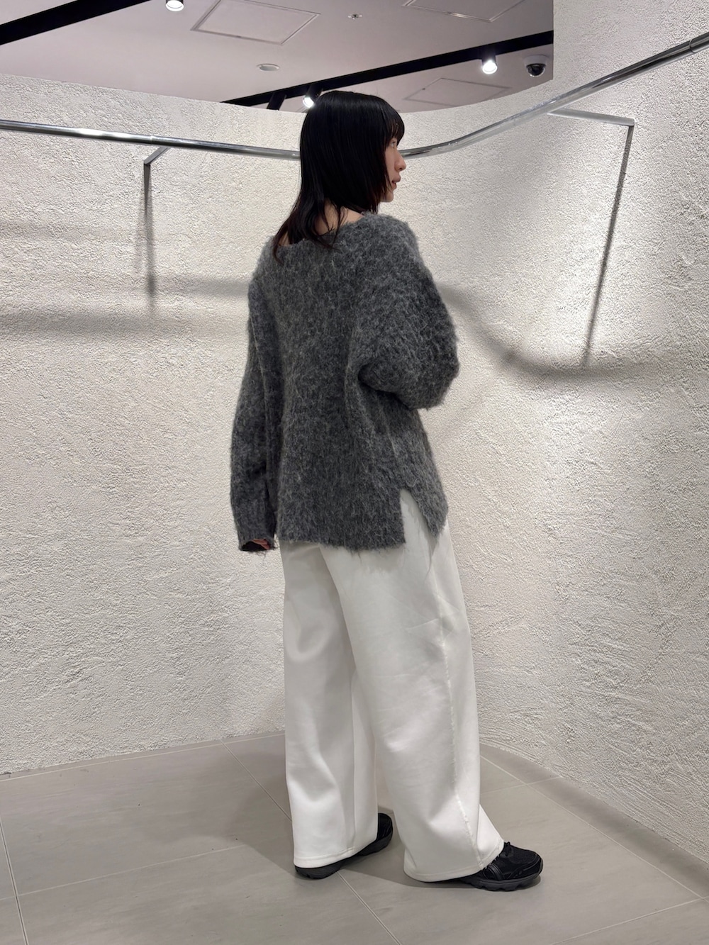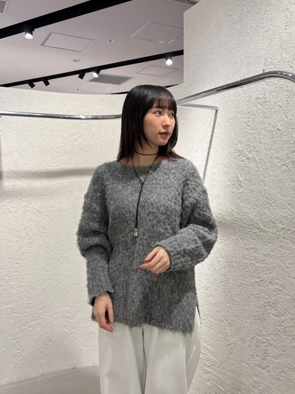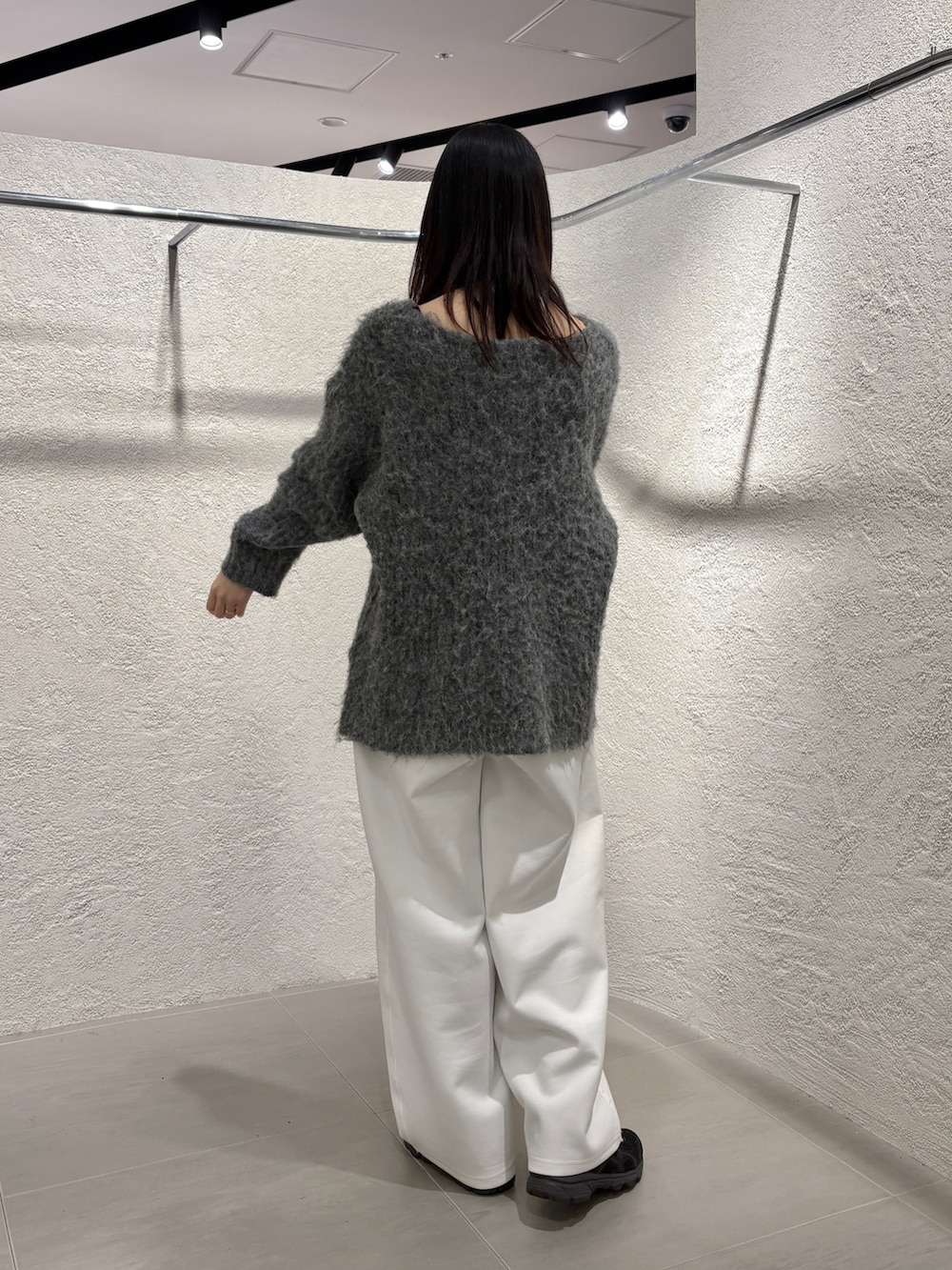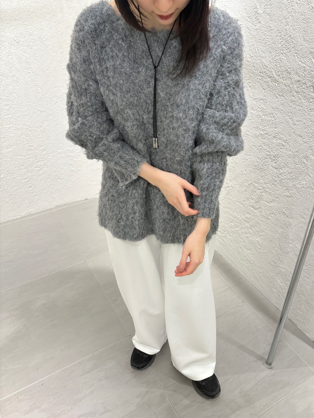 もこもこのニットは体が大きく見えがちですが、こちらのニットは肩が横に開いているので顔周りがスッキリ見えます✨