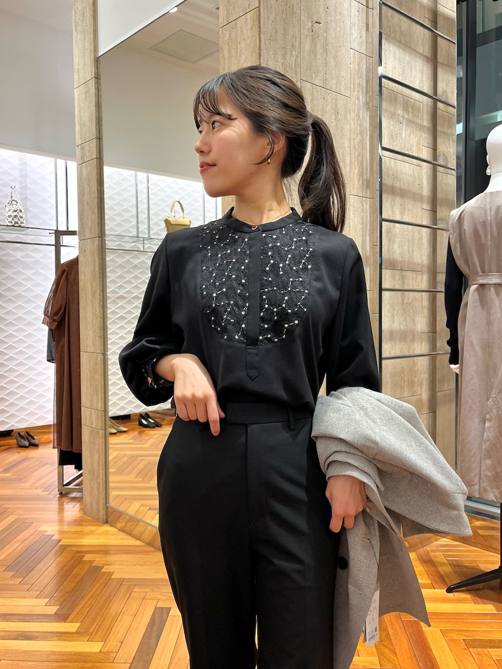 ROSSOウォッシャブルフラワー刺繍レースブラウス