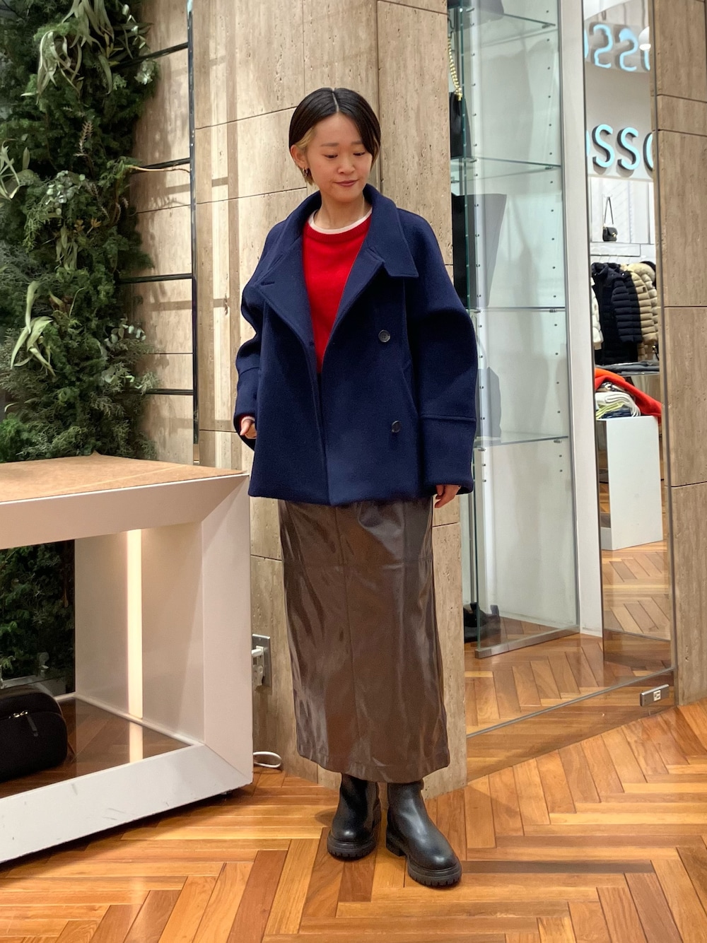 差し色で赤ニットを合わせてみました!