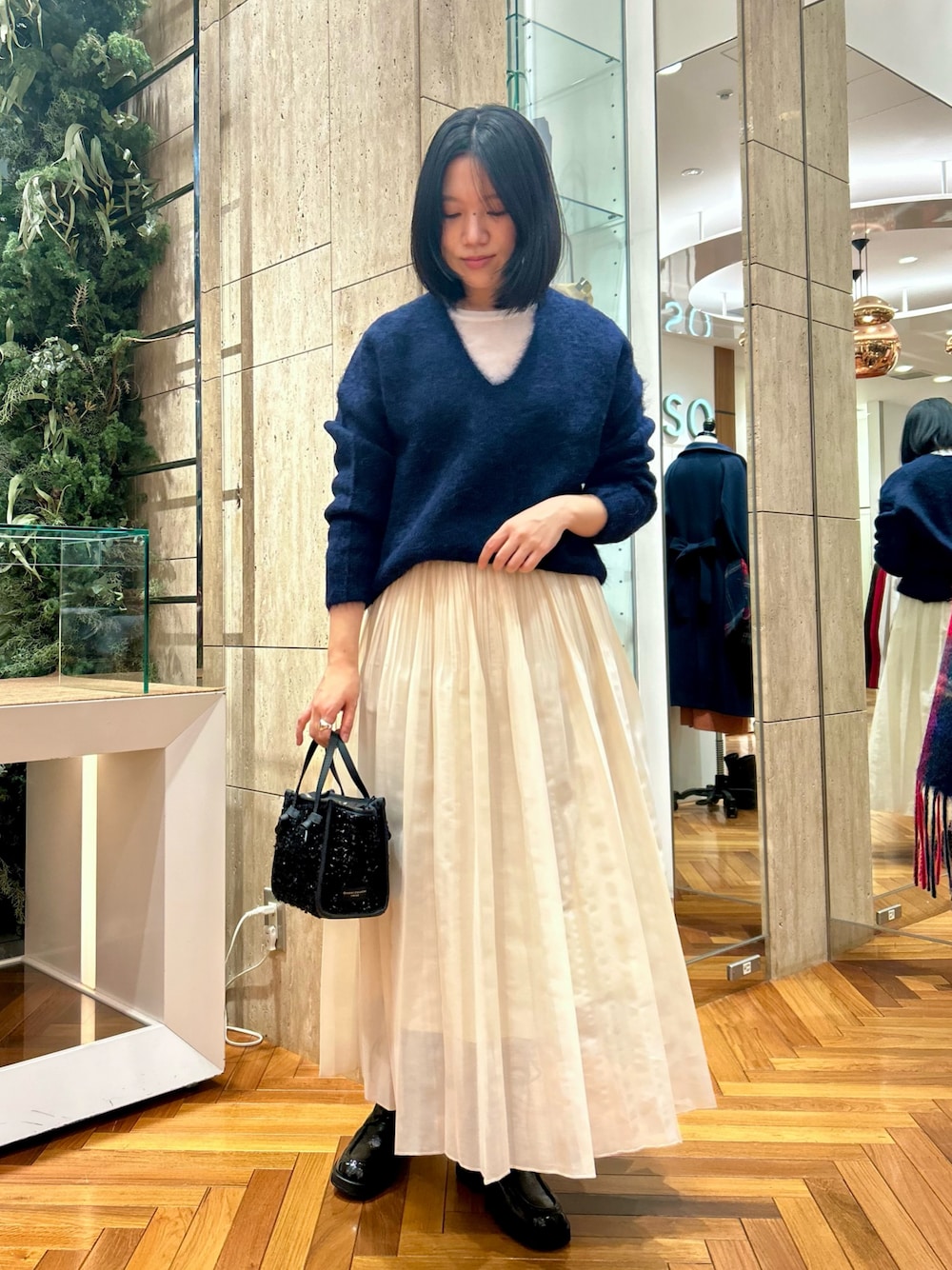 いつもは避けがちな甘めスカートも、クリスマスの雰囲気につられてチャレンジしてみました!