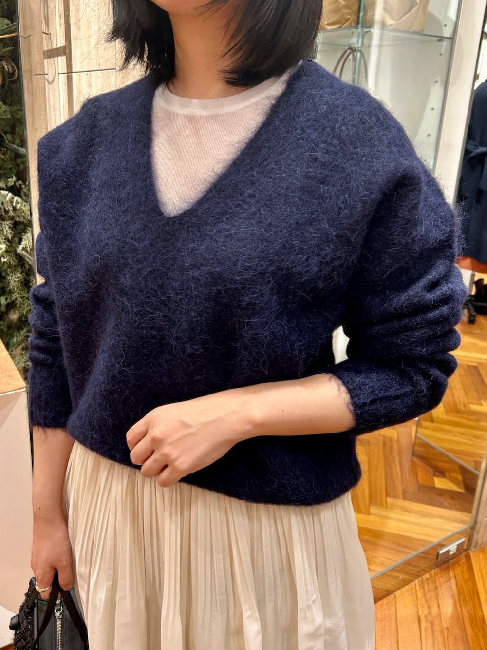 アルパカ混で暖かく、深めのVネックが骨格ストレートの私にも嬉しい!
