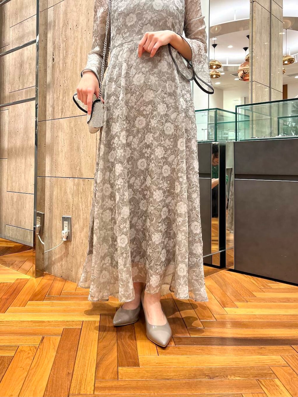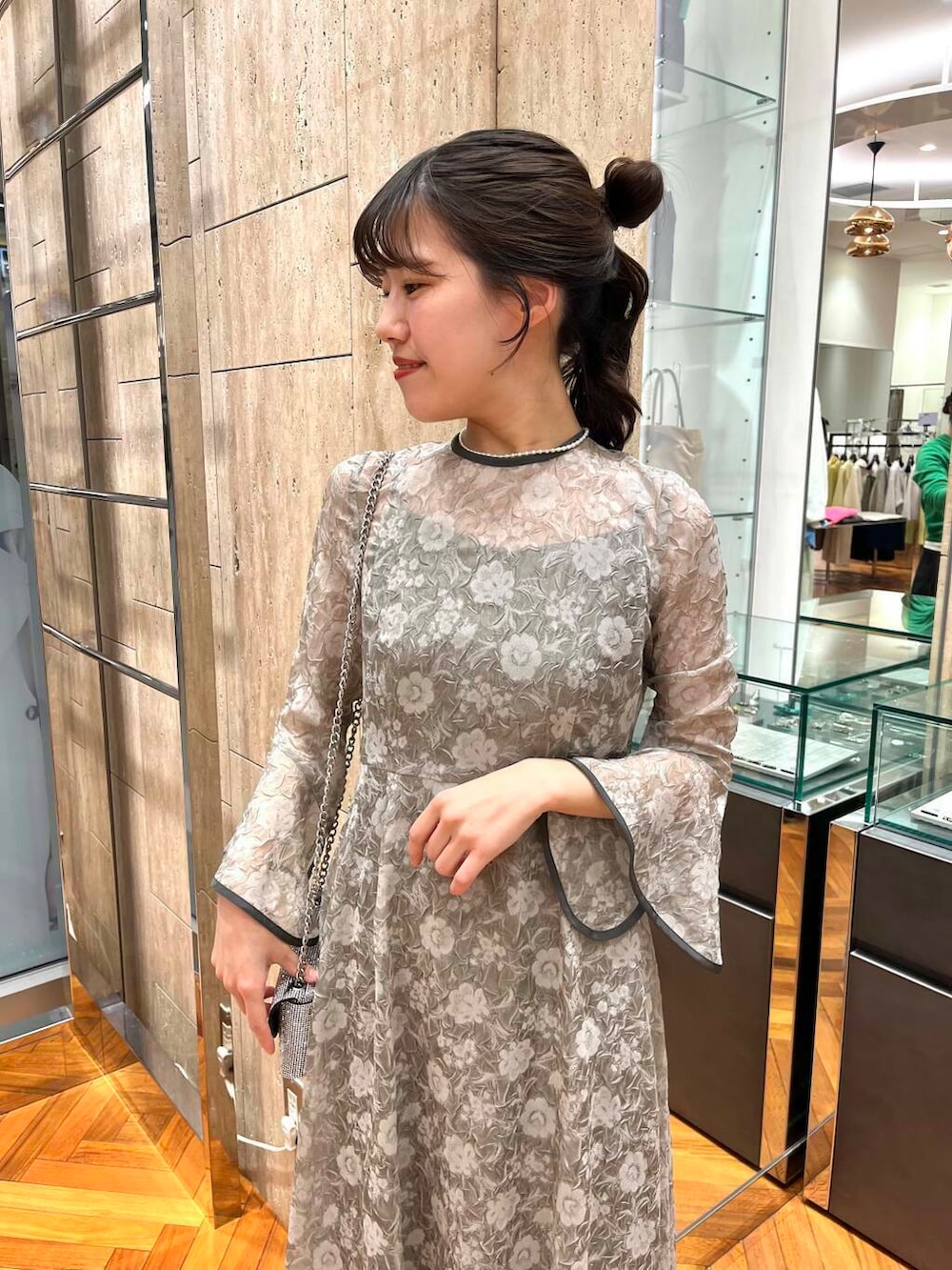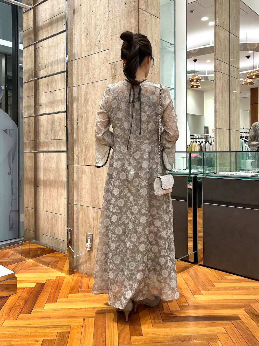 素材感:透け感のあるドレスにインナーキャミがセットです。腕周りの透け感が特に綺麗ですよ!