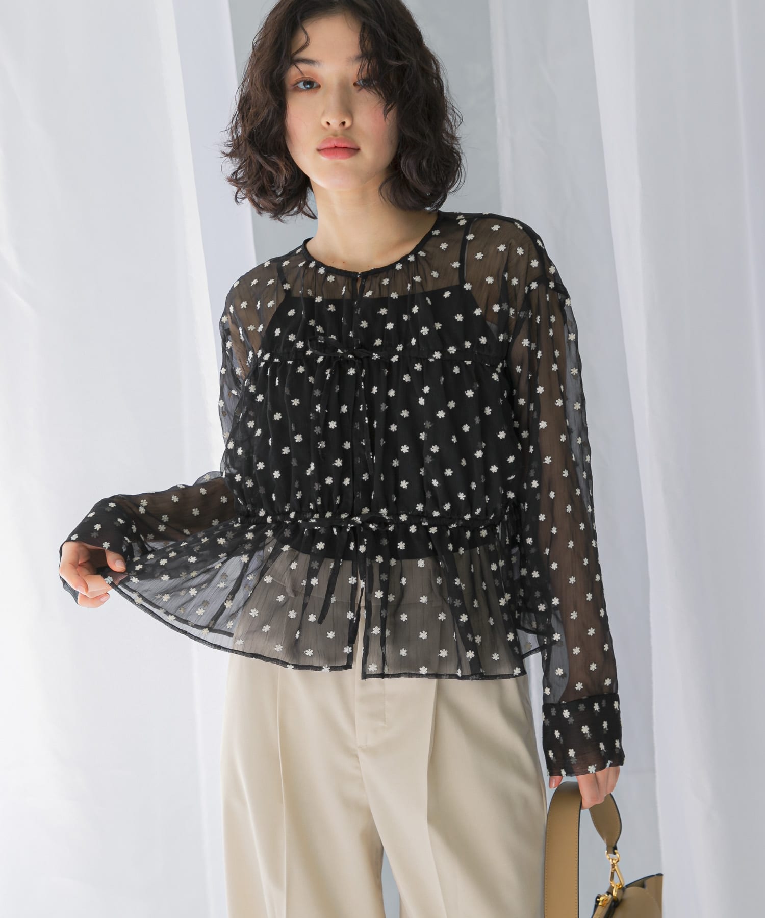 透け感もあるので春のおでかけにぴったりなブラウスです!是非参考にしてみてください!
