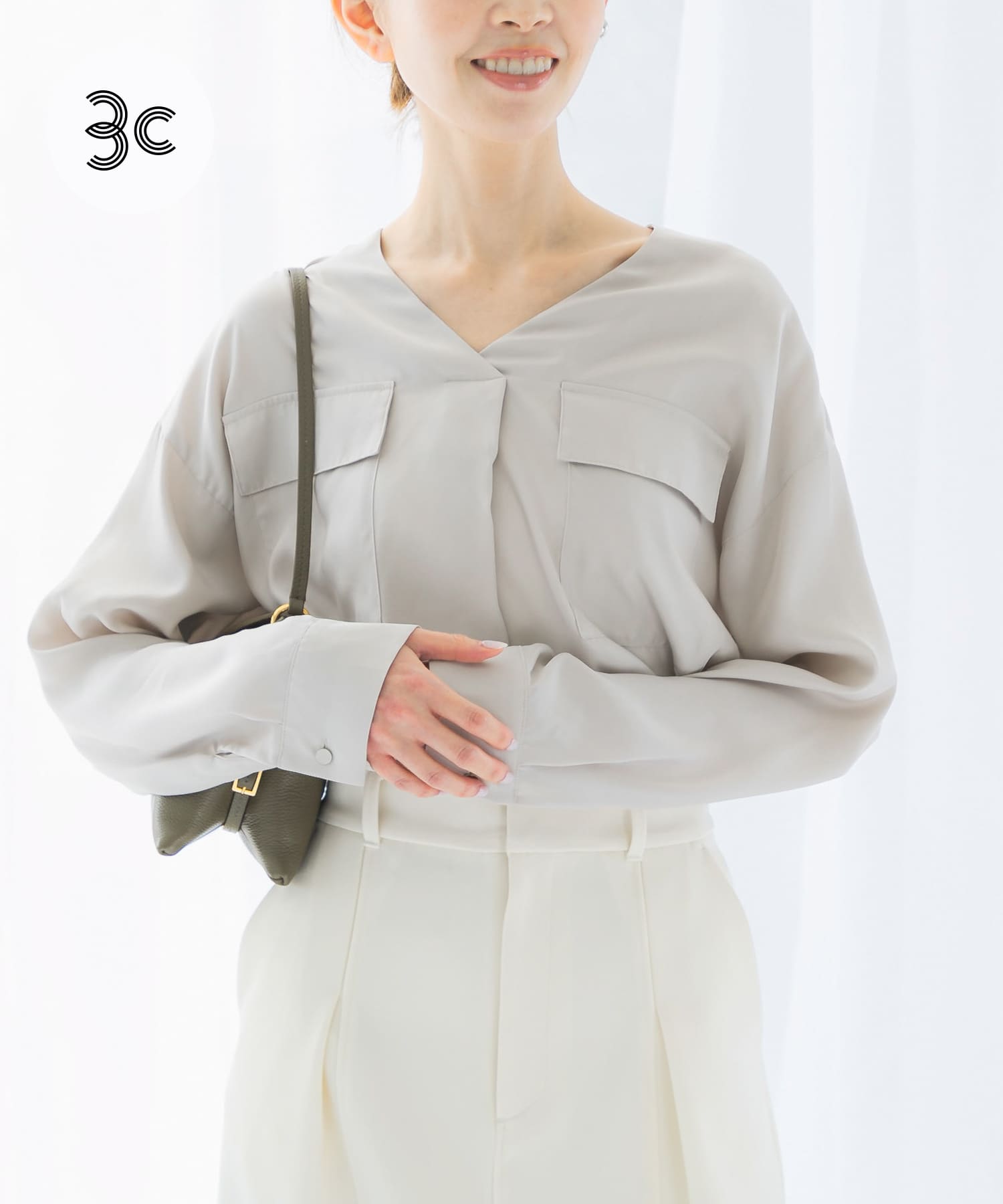 程よい光沢感にVネックデザインのこちらのブラウスは清潔感ときちんと感が兼ね備わっているのでぜひお仕事着として参考にしてください!!