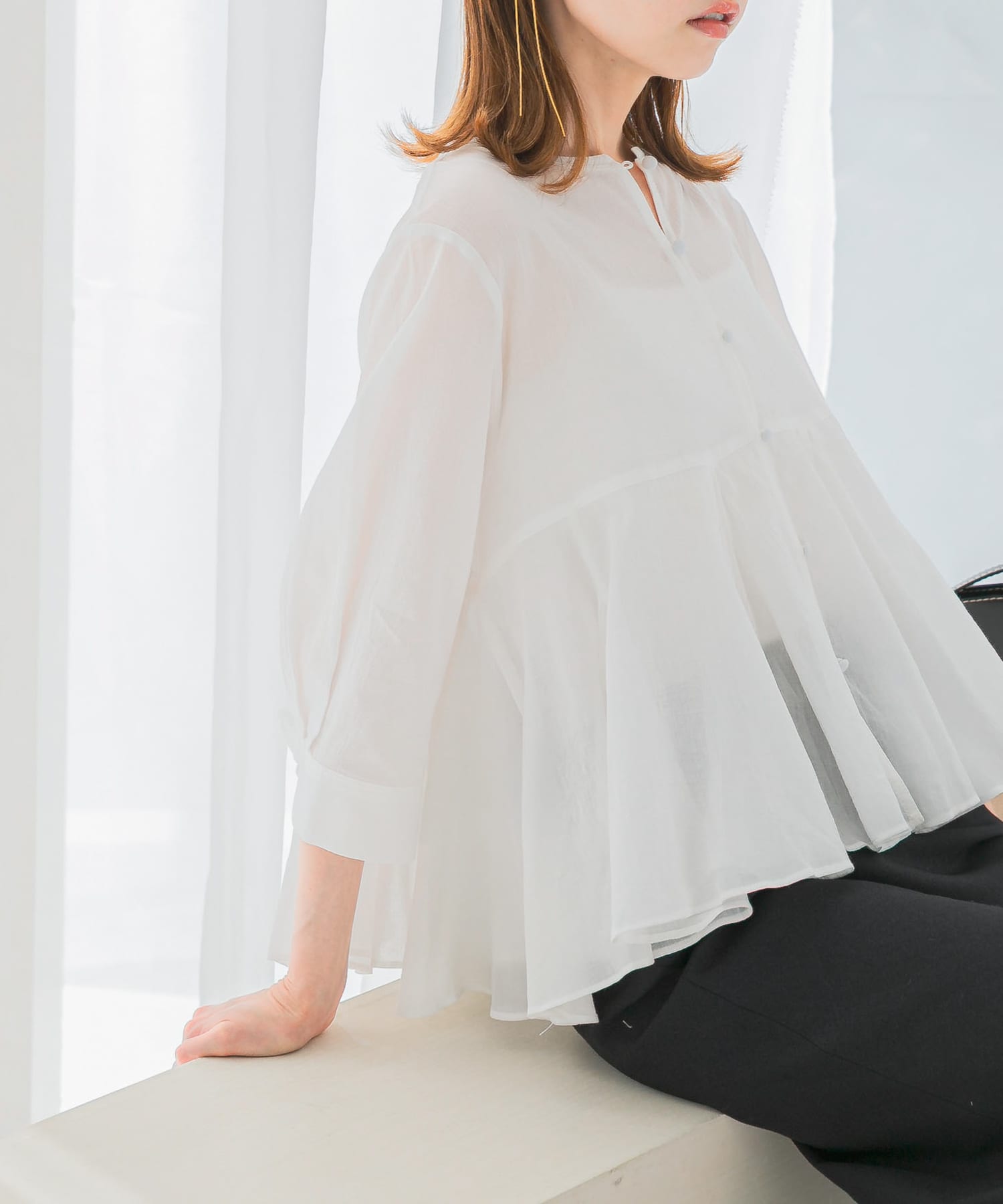 ROSSOペプラムギャザーシャツブラウス