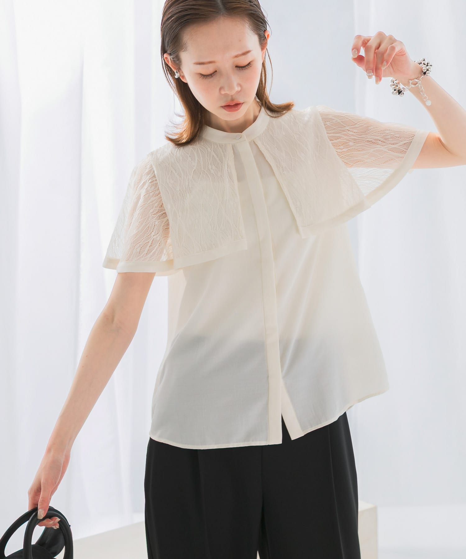 ROSSOウォッシャブルレースケープブラウス- カラー: