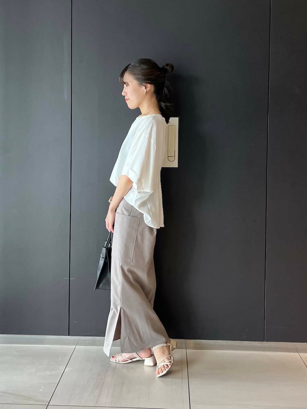 夏とはいえ、室内は寒いと思うのでお袖付きなデザインは必須ですよね!是非1枚で完成できるブラウスのスタイリング、参考にしてみてください♪