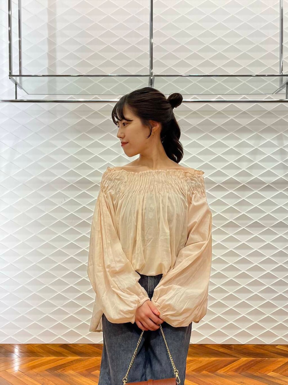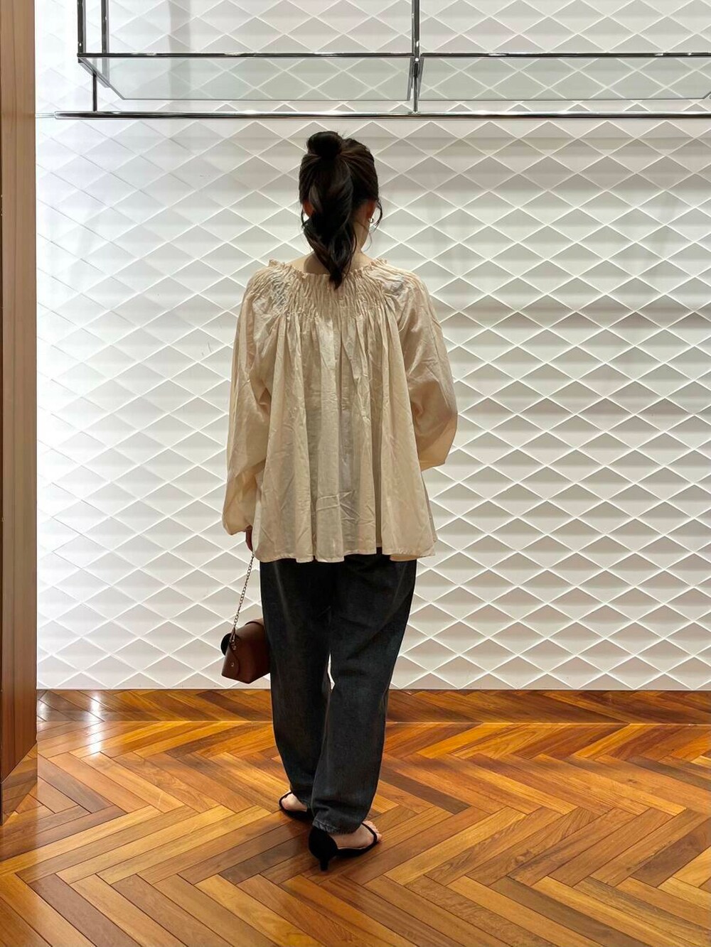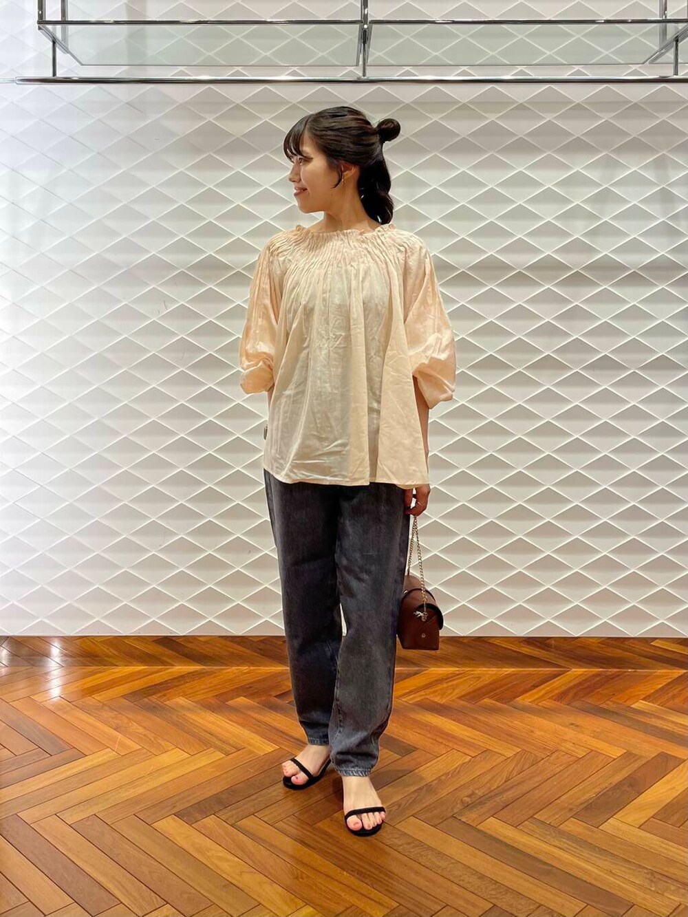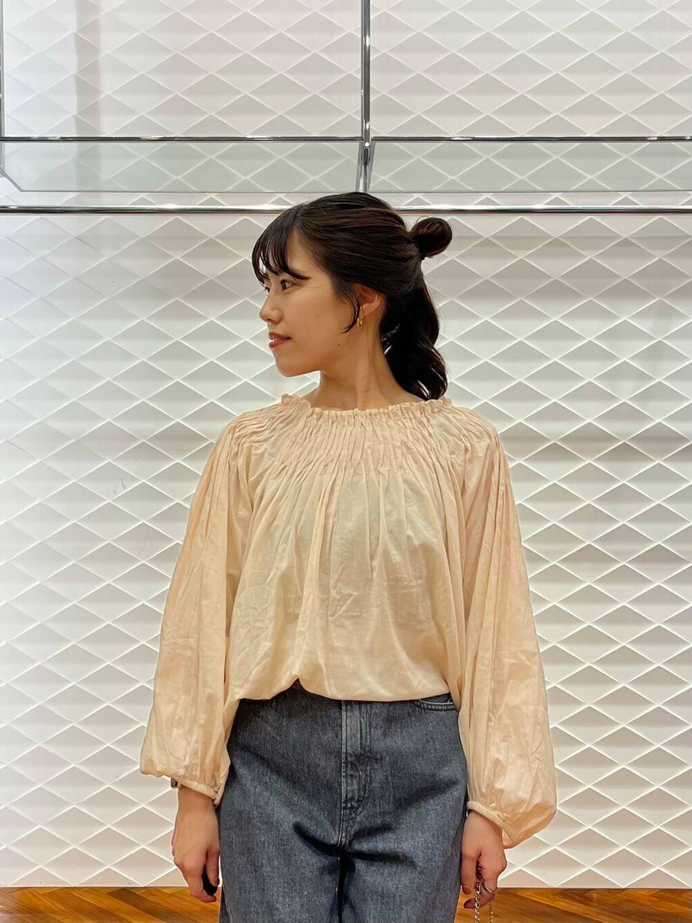 リネン素材のブラウスで、オフショルとしても使える2way仕様になってます!デニムでカジュアルにコーディネートしてみました!♪