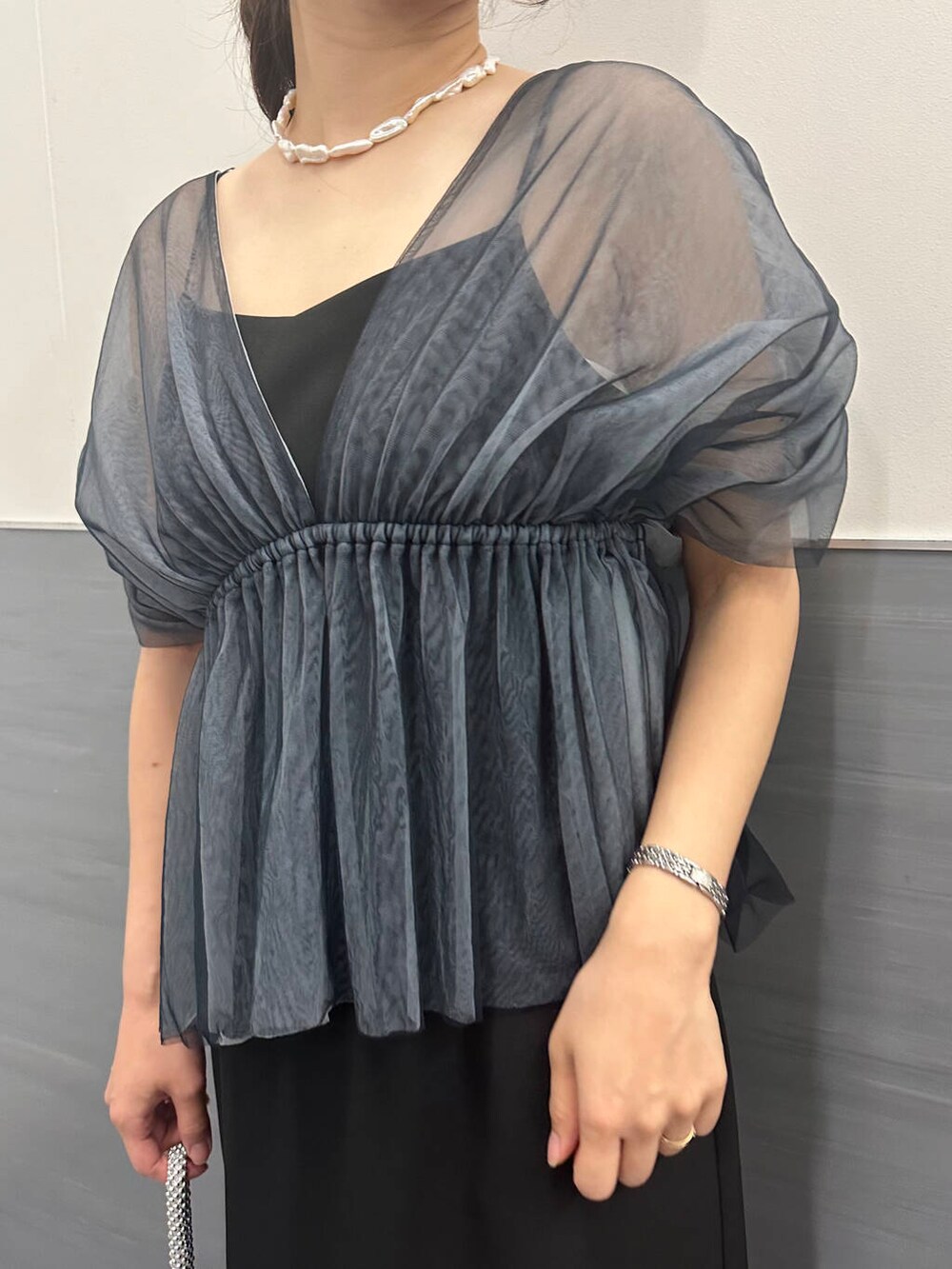 キャミワンピとブラウスのレイヤードタイプなので