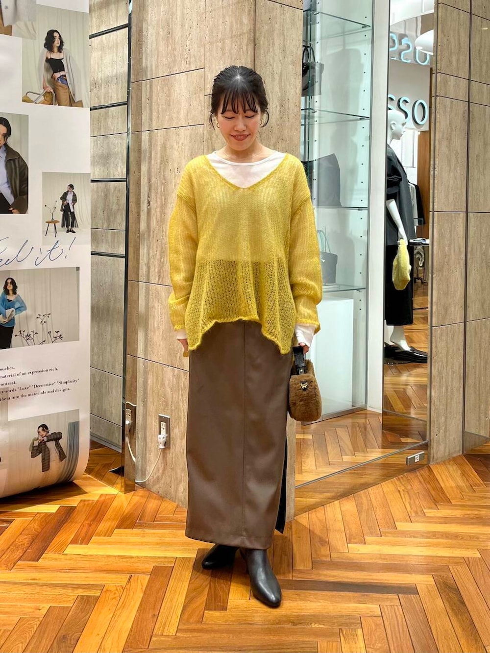 レザー風のタイトスカートでワンランク上のスタイルに♪
