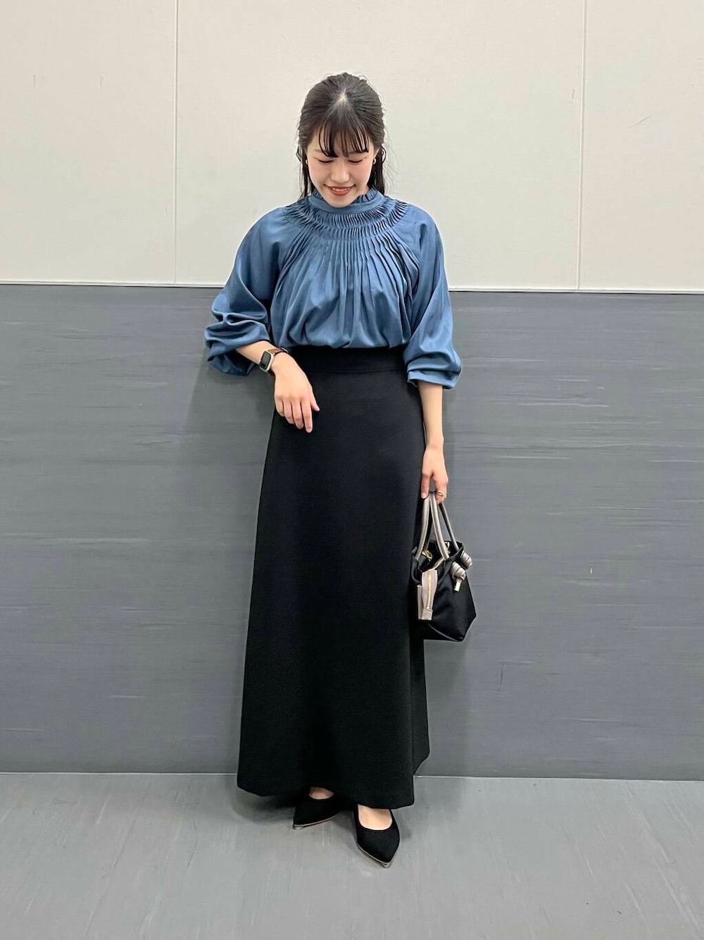 スカートのAラインなデザイン女性らしい印象にしてくれます♪