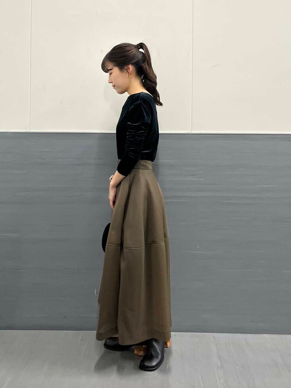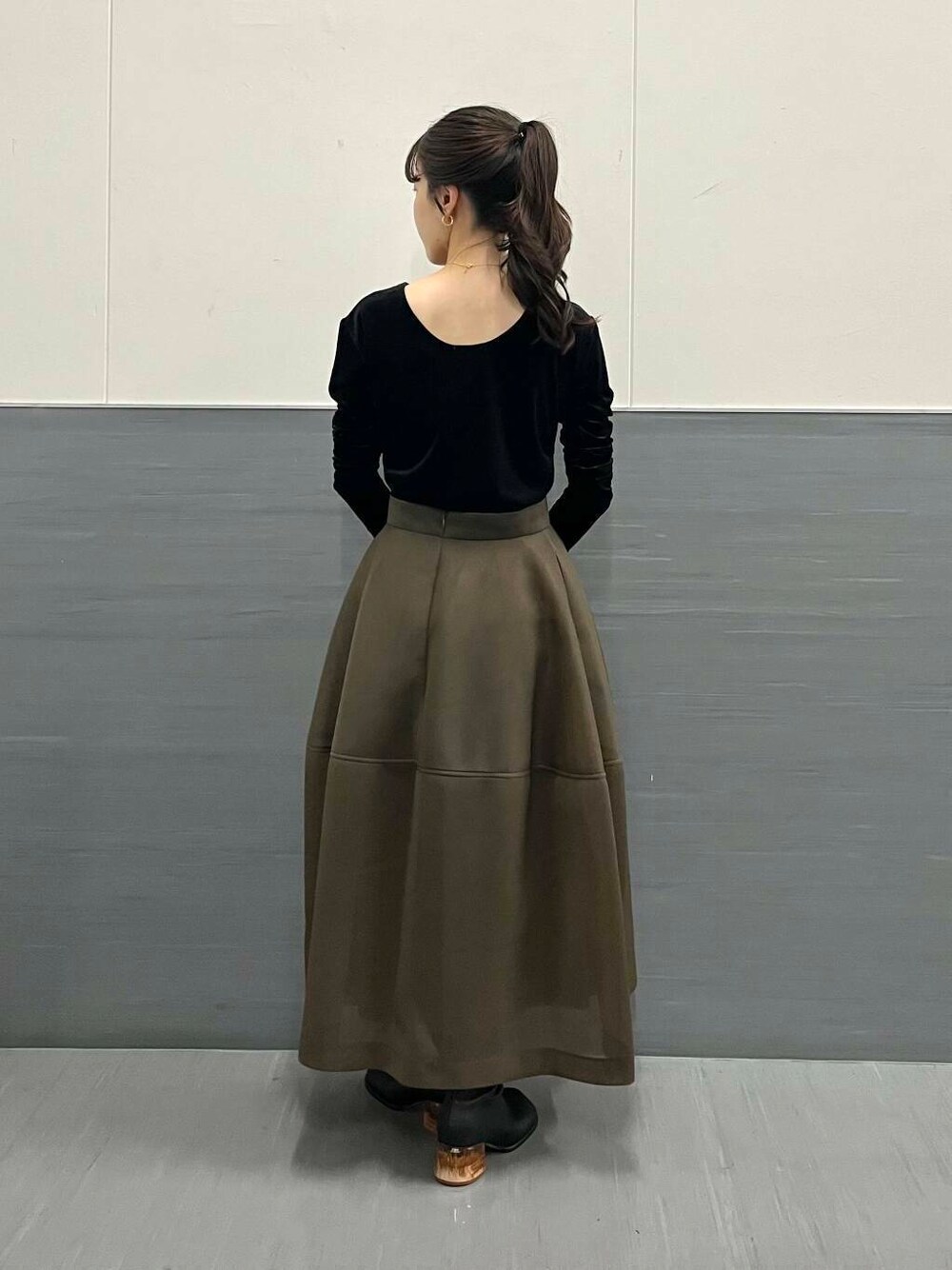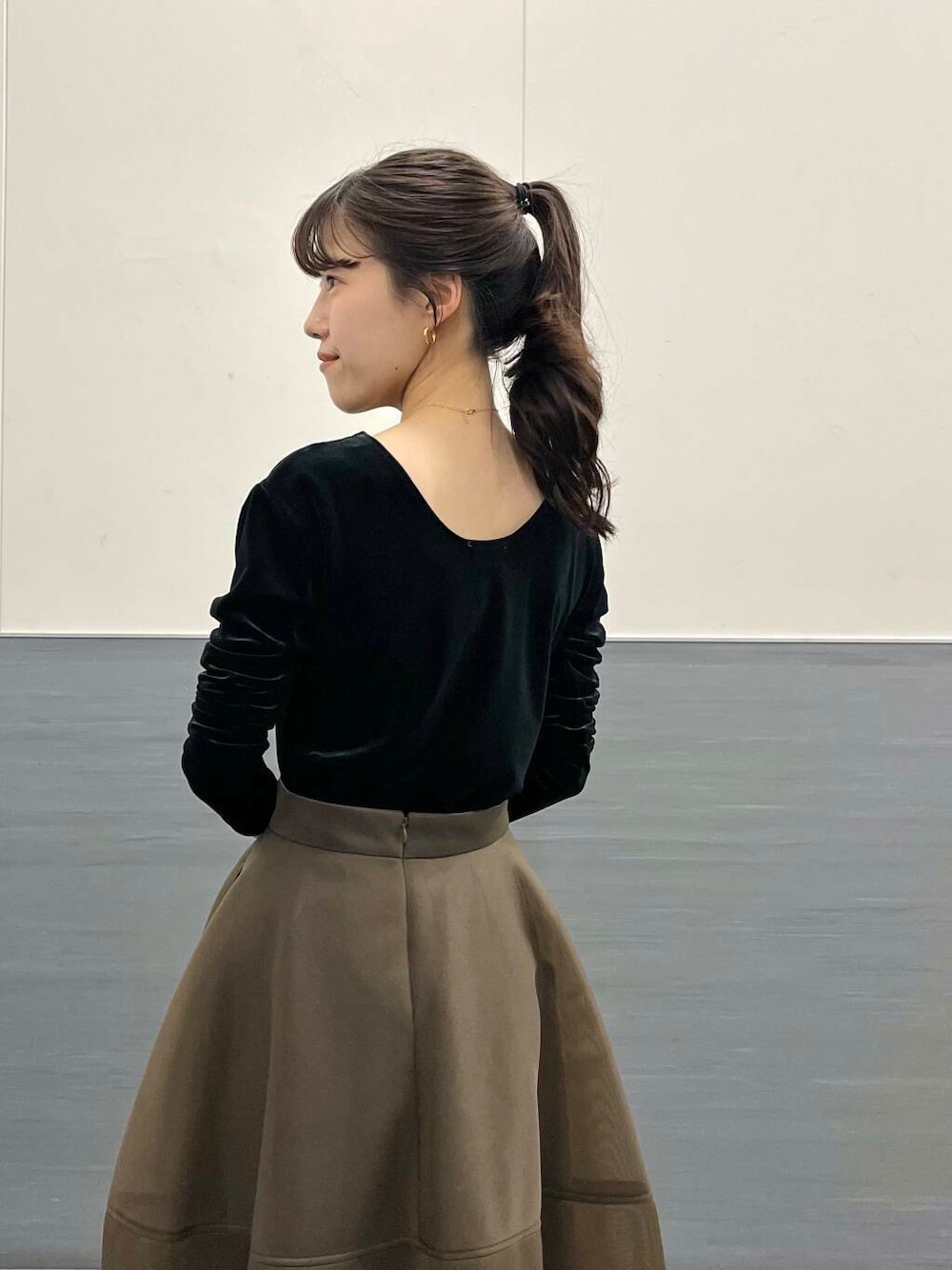 一見シンプルなトップスですが、ベロア生地とバックスタイルが少し広がりのある上品なトップスです!