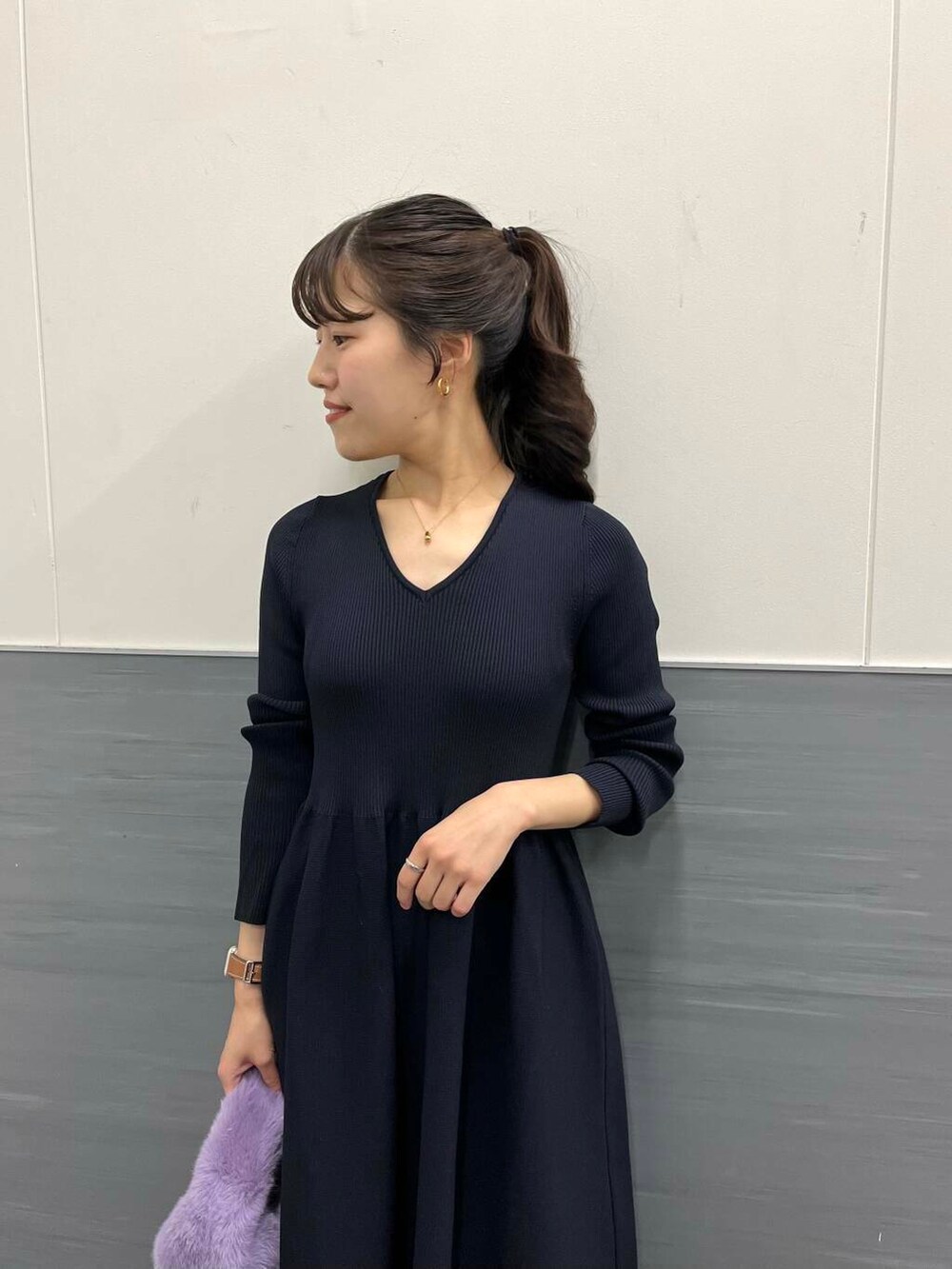 ざっくり開いたVネックデザインでお顔周りをスッキリと見せてくれますよ!