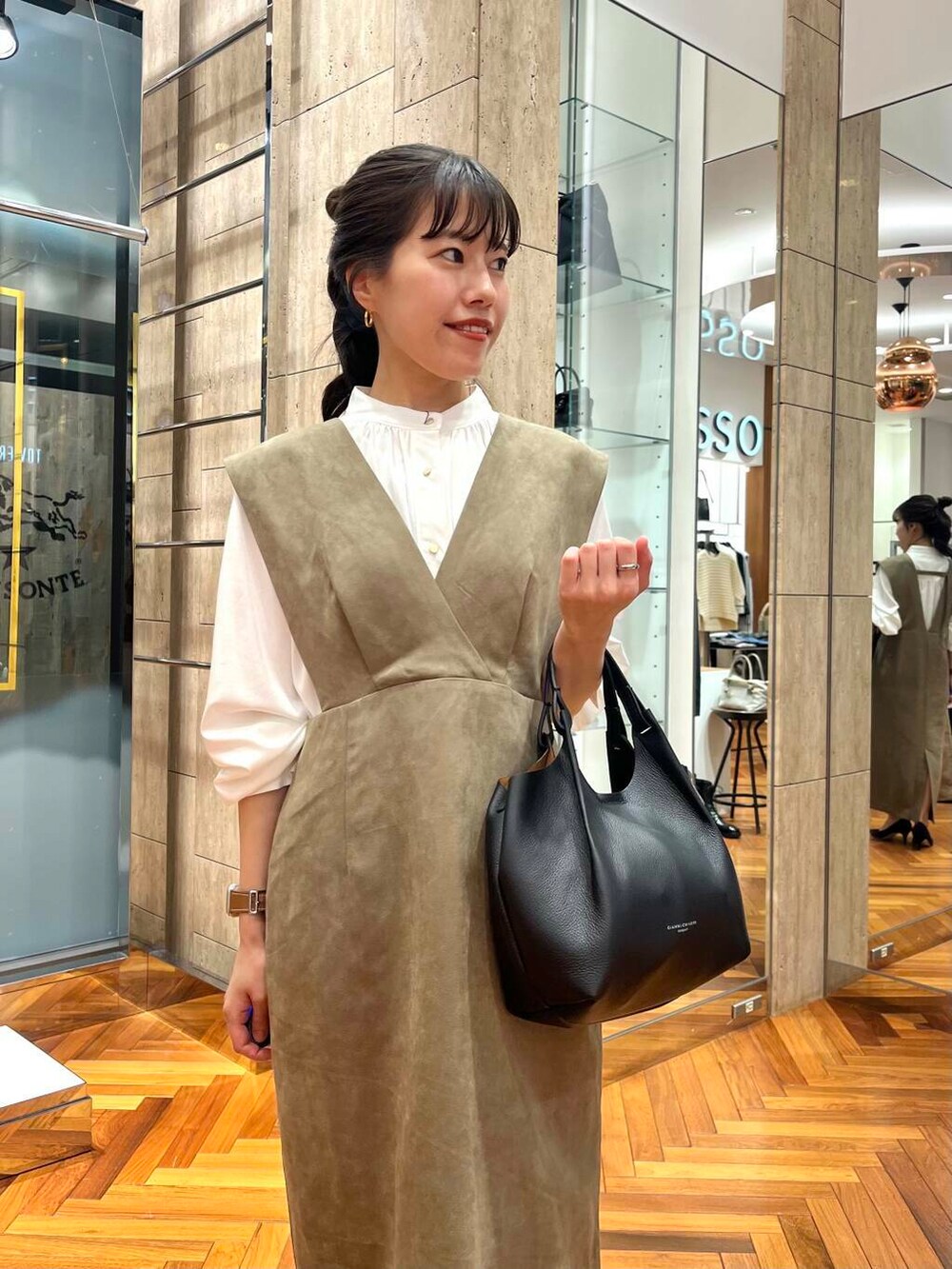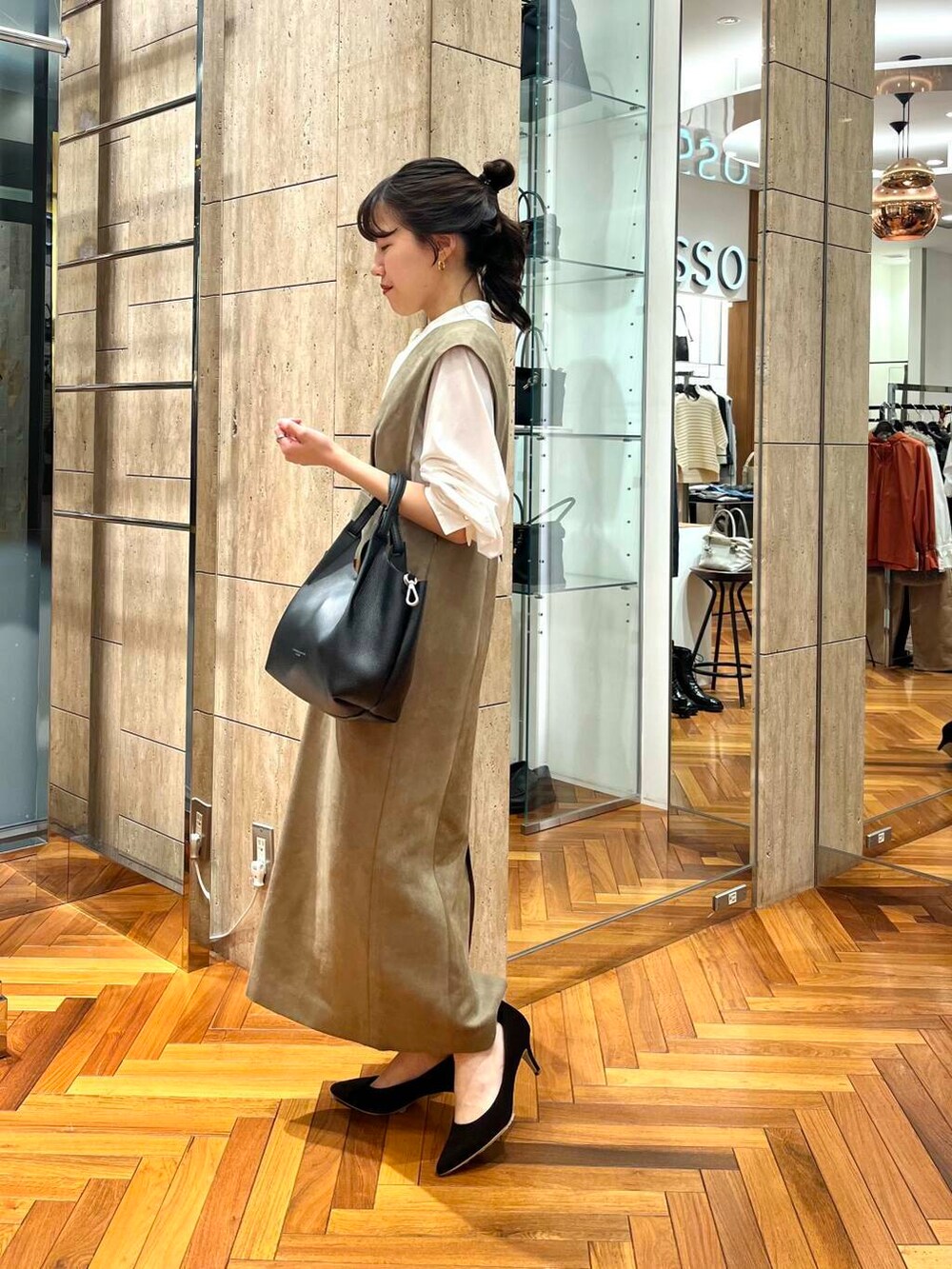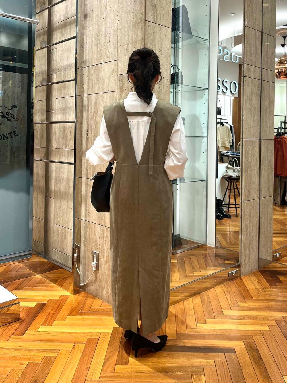 インナー次第で幅広く着回せるので、ON.OFF兼用で着回しが可能!今回はブラウスで綺麗めスタイルにしてみました♪