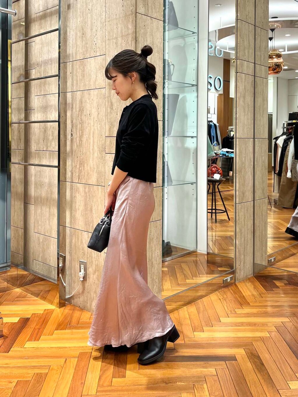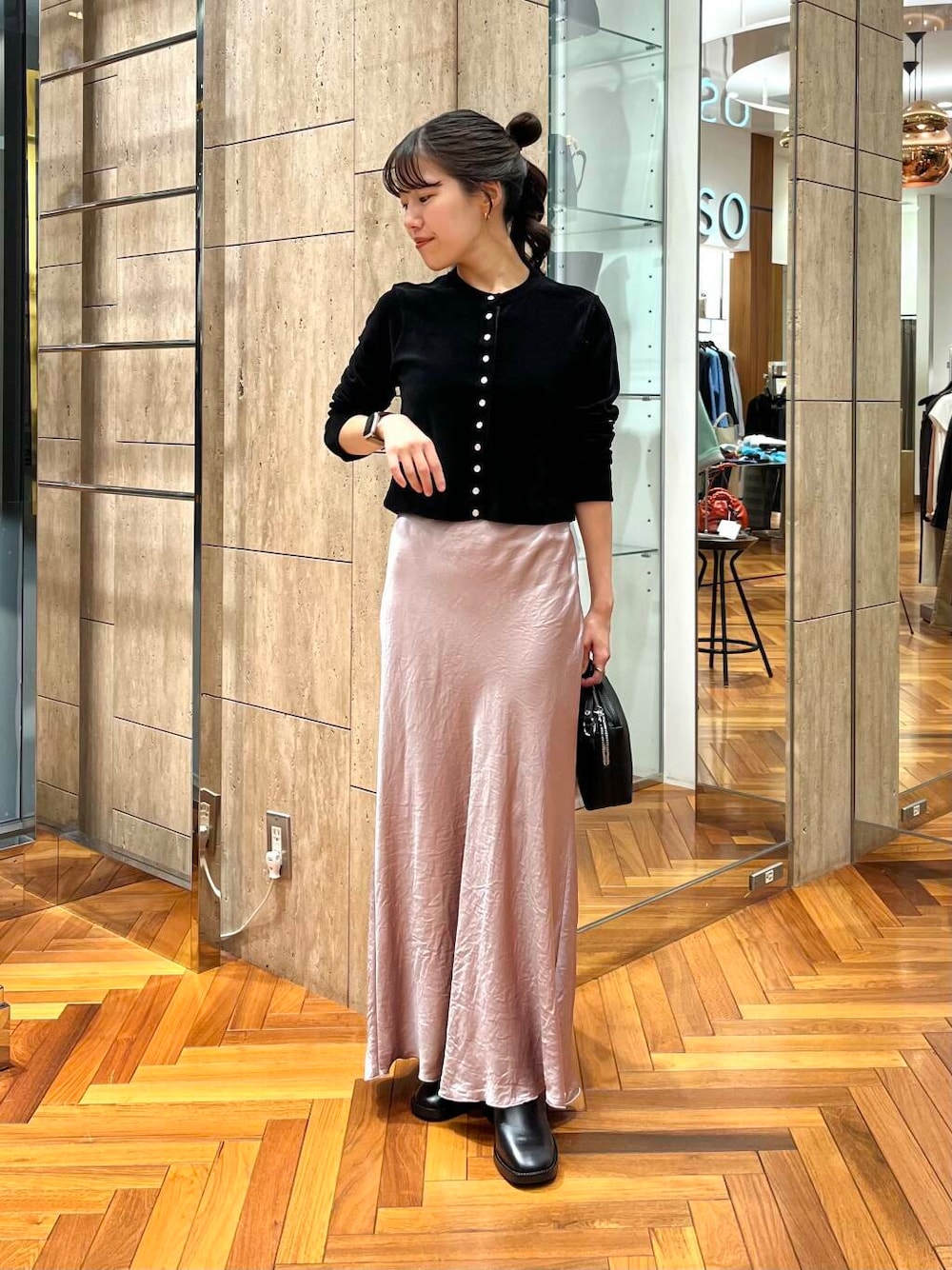 サテンスカートと合わせで秋のおでかけコーデに是非参考にしてみてください!