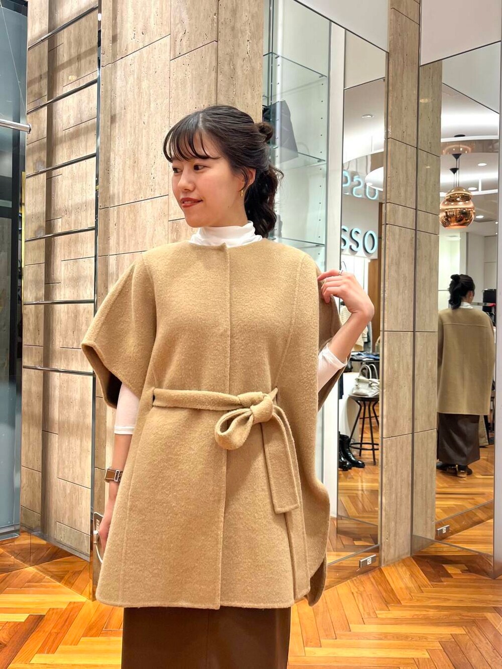 リボンを外してゆったりポンチョコートとして着て頂いても◎