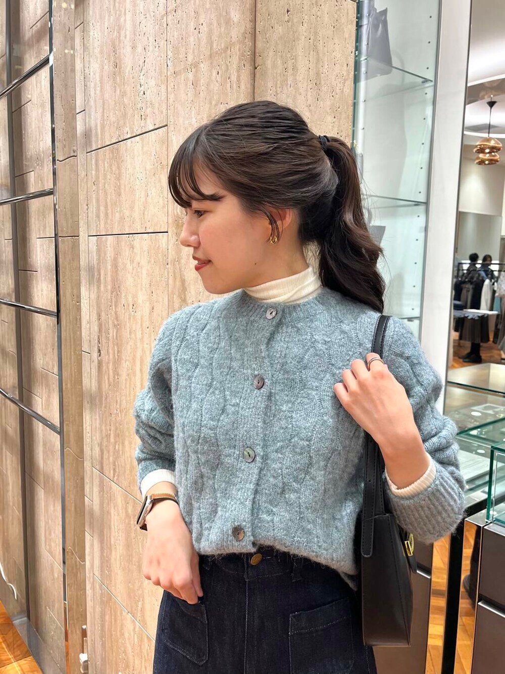 カーディガンとしても使えるトップスでインナーにタートルネックをチラ見せがこれまた可愛いんです♪
