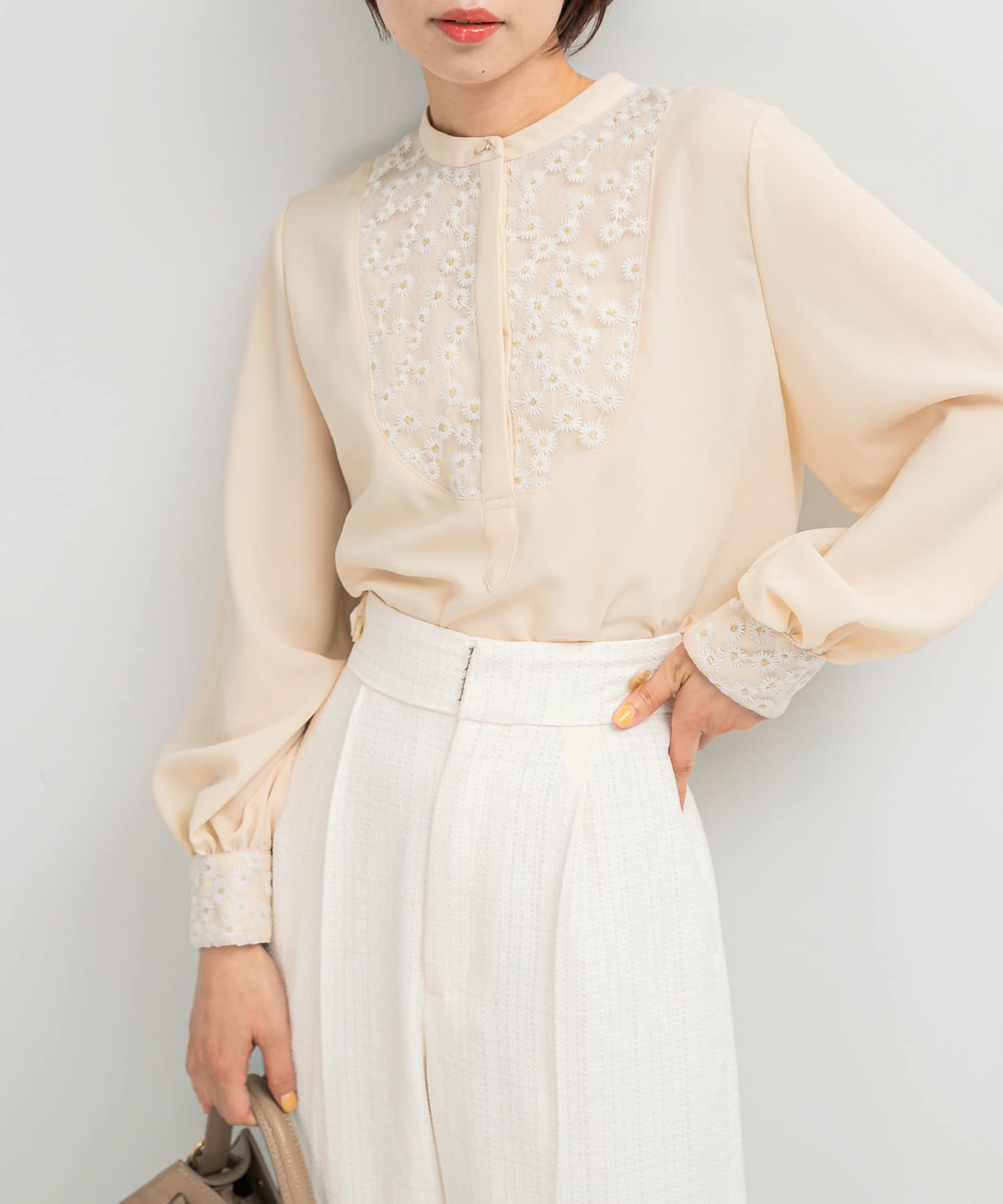 『再入荷予定カラー』ウォッシャブルフラワー刺繍レースブラウス