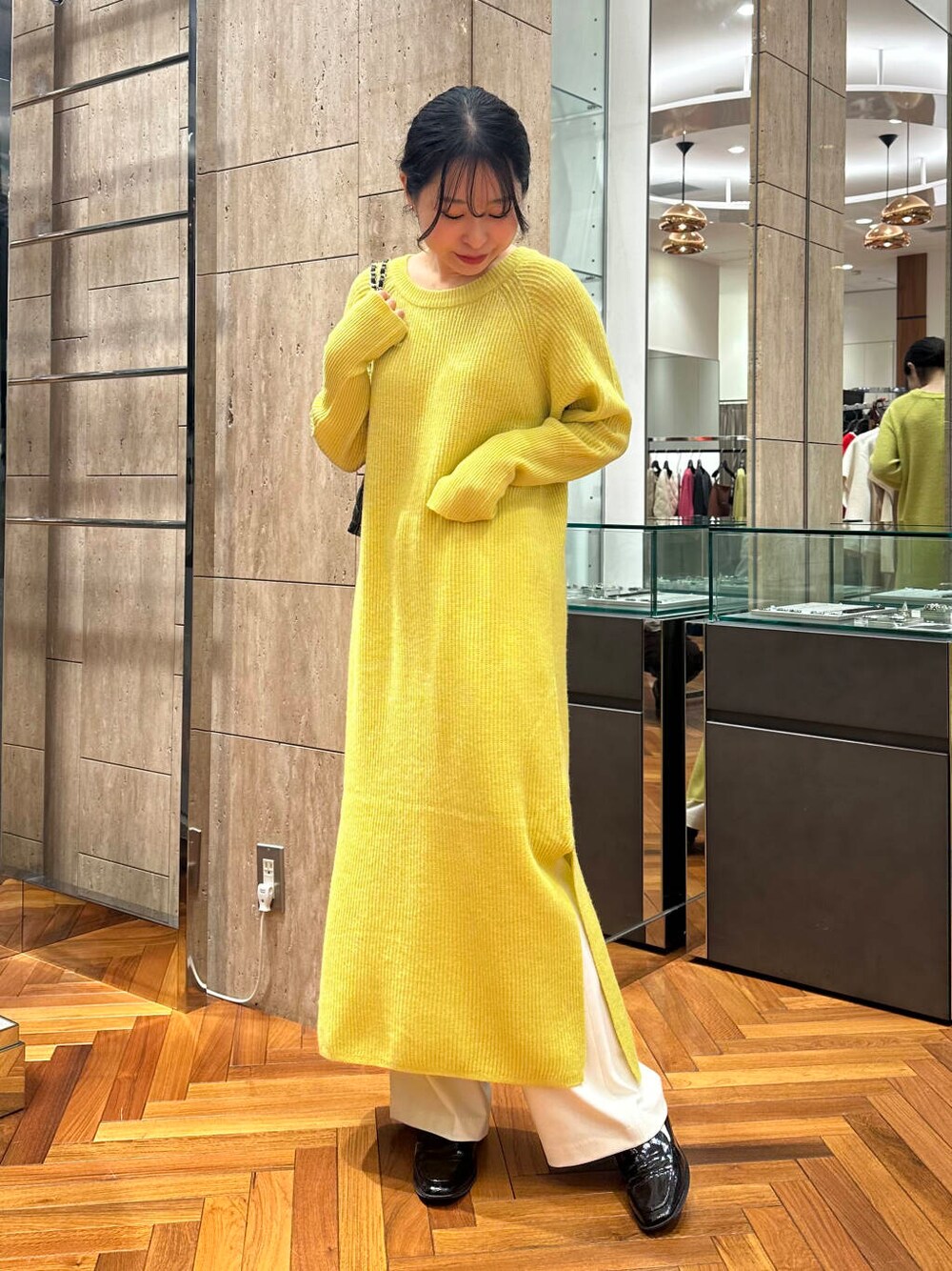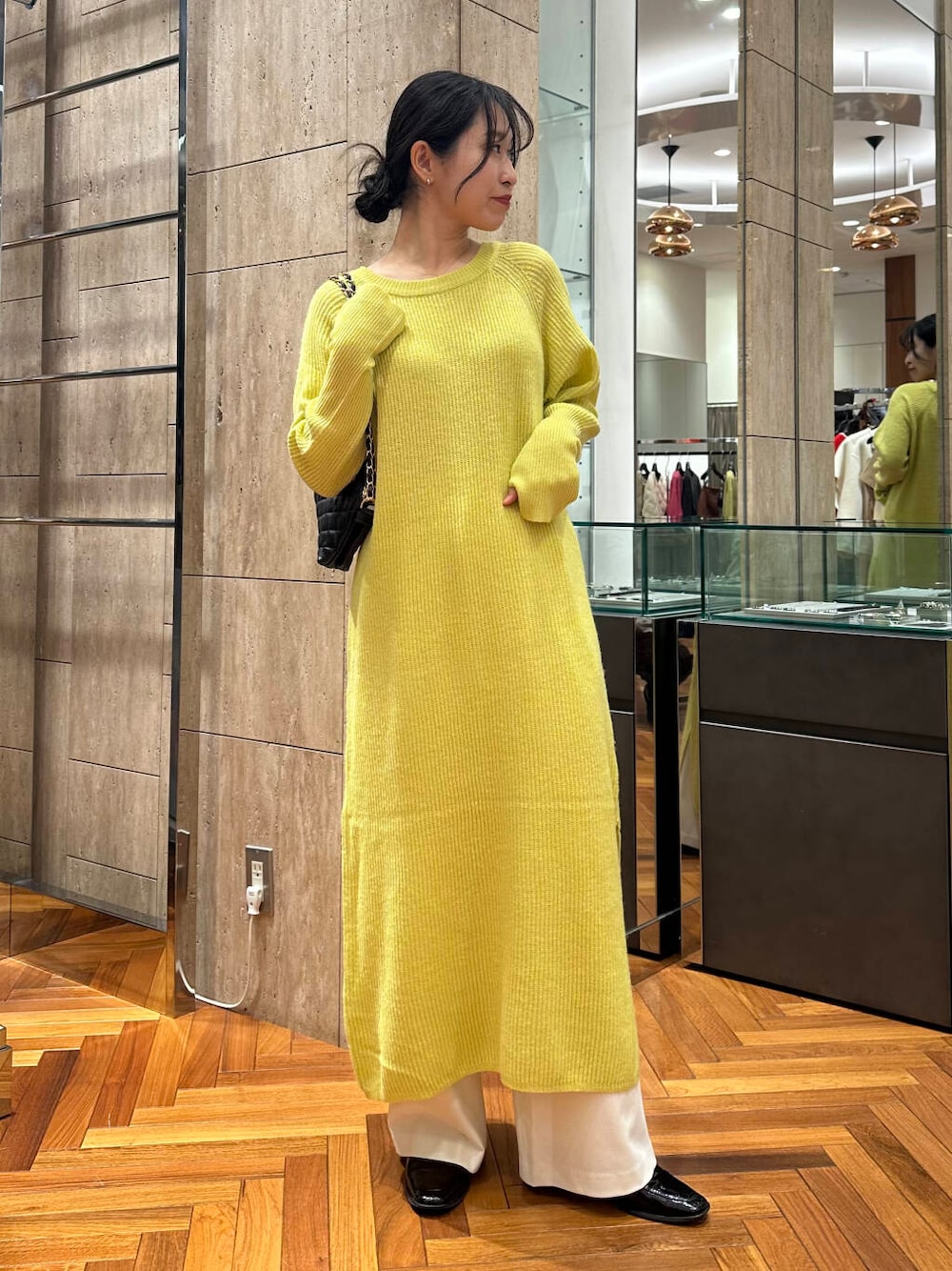 ROSSOヤク混サイドスリット畦ニットワンピース