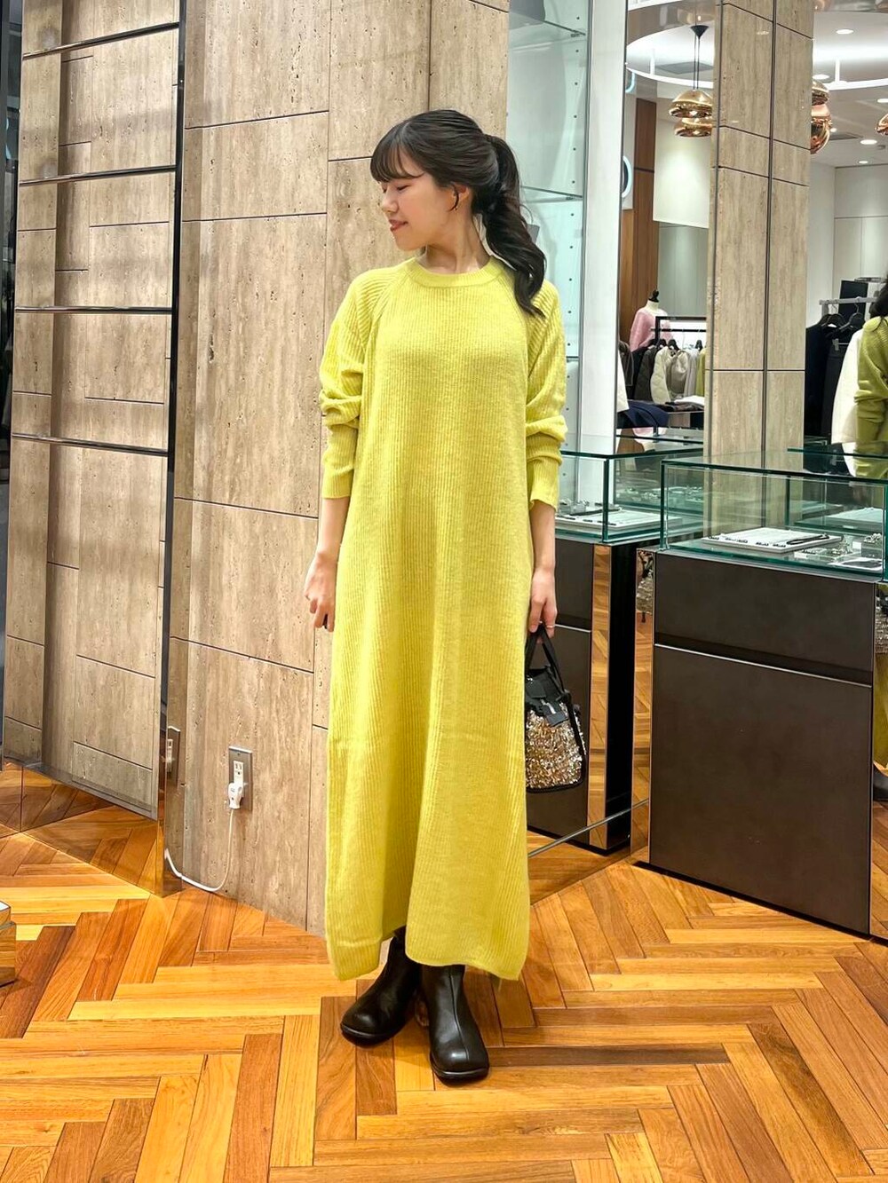 ROSSOヤク混サイドスリット畦ニットワンピース