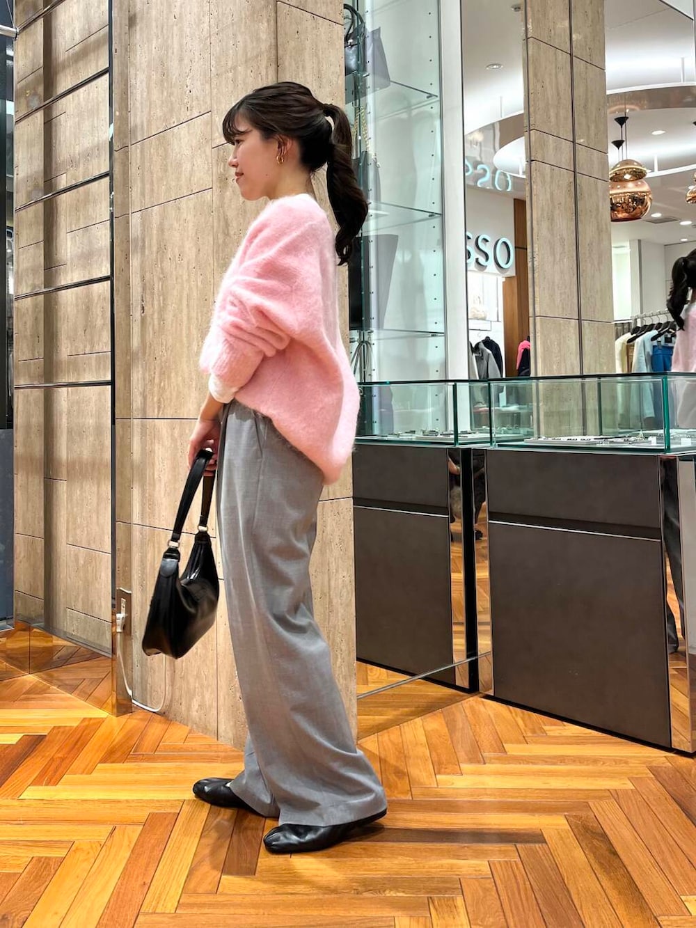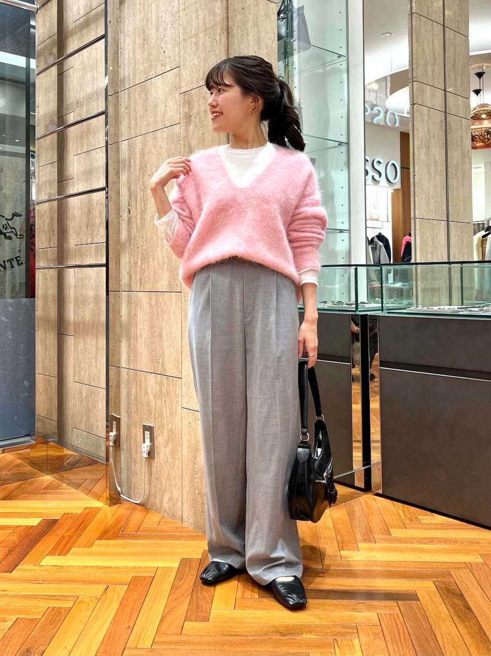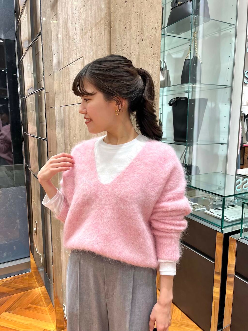 ピンクカラーで冬のイベントにぴったりな主役級ニットですよ!